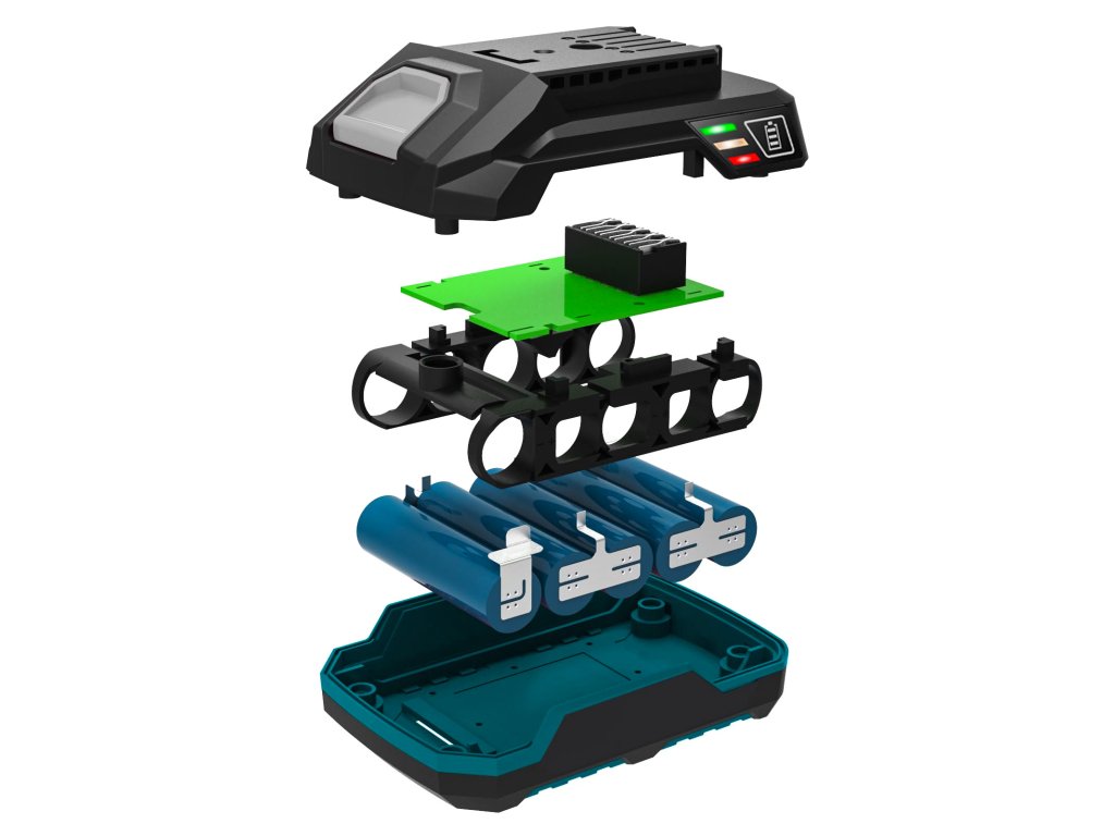 Akumulátor je vhodný jen pro lithium-iontové nářadí. Baterie je napájena články značky EVE, které zaručují dlouhou výkonnost a životnost baterie. Baterie má indikaci článku pro kontrolu stavu nabití. Pogumovaný povrch baterie zaručuje jednoduchou manipulaci s článkem při výměně a dodatečnou ochranu článků.