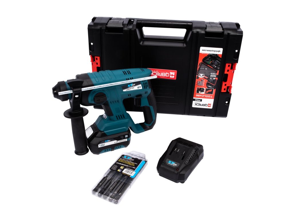 Aku kladivo SDS PLUS + baterie 5.0Ah + sada vrtáků + nabíječka 3.5A + kufr XTline