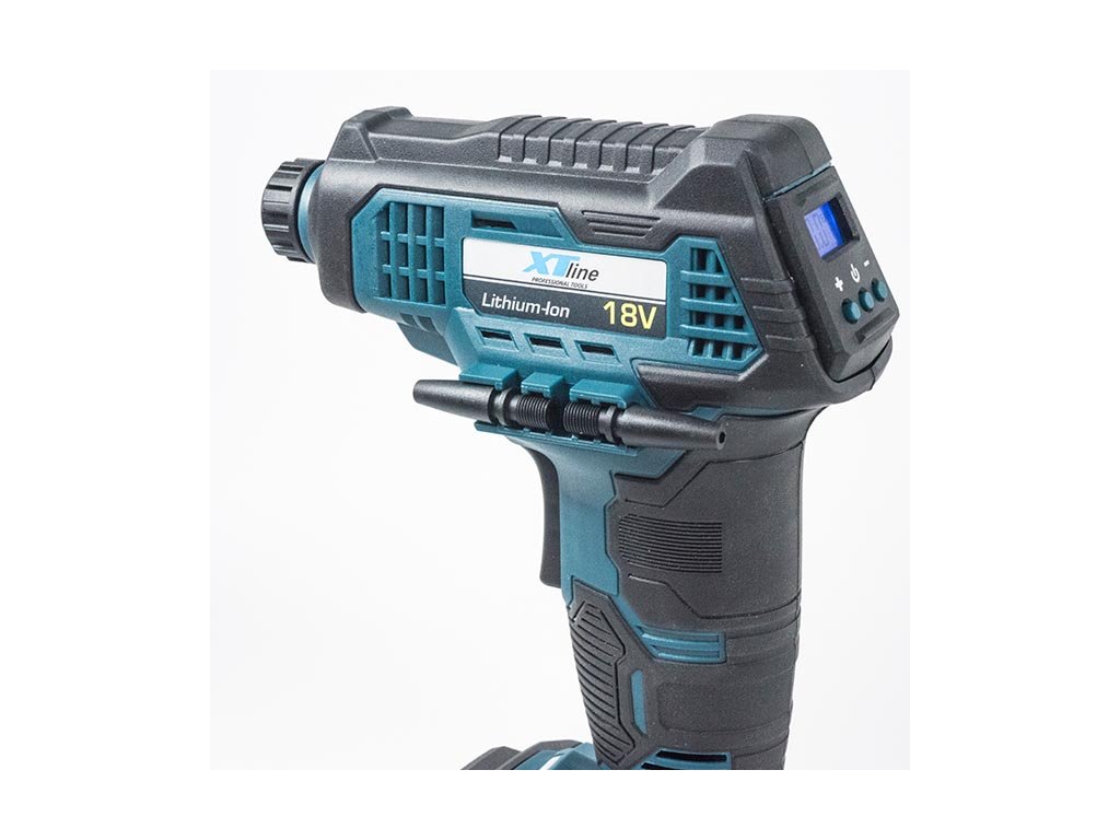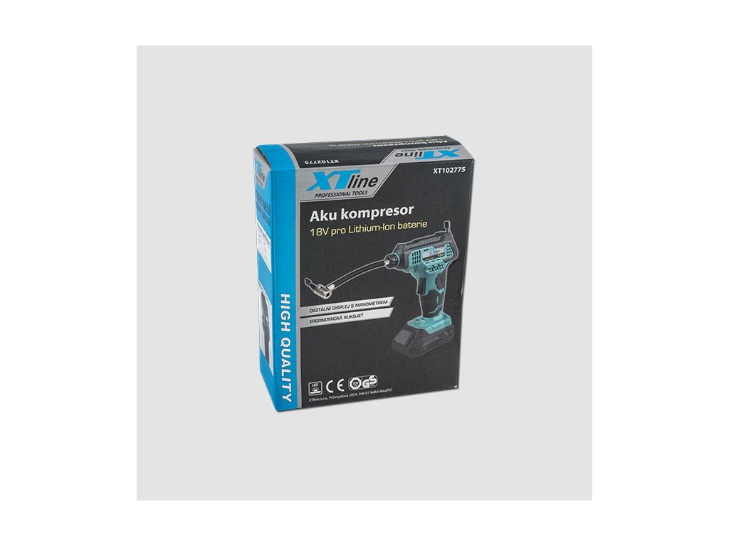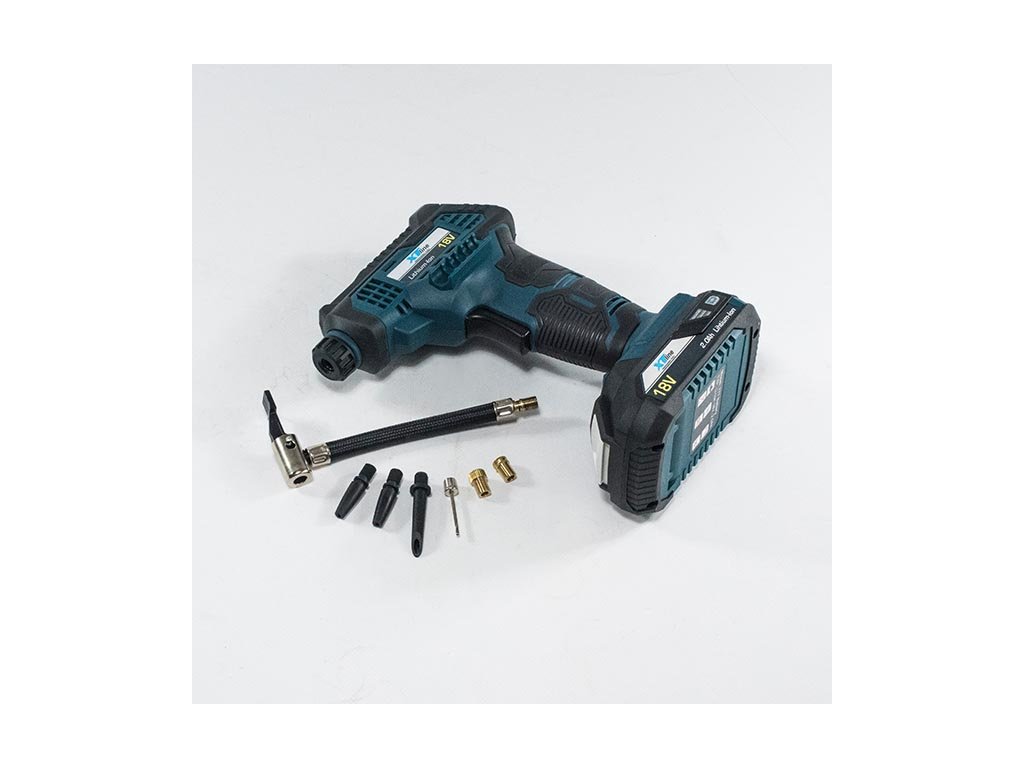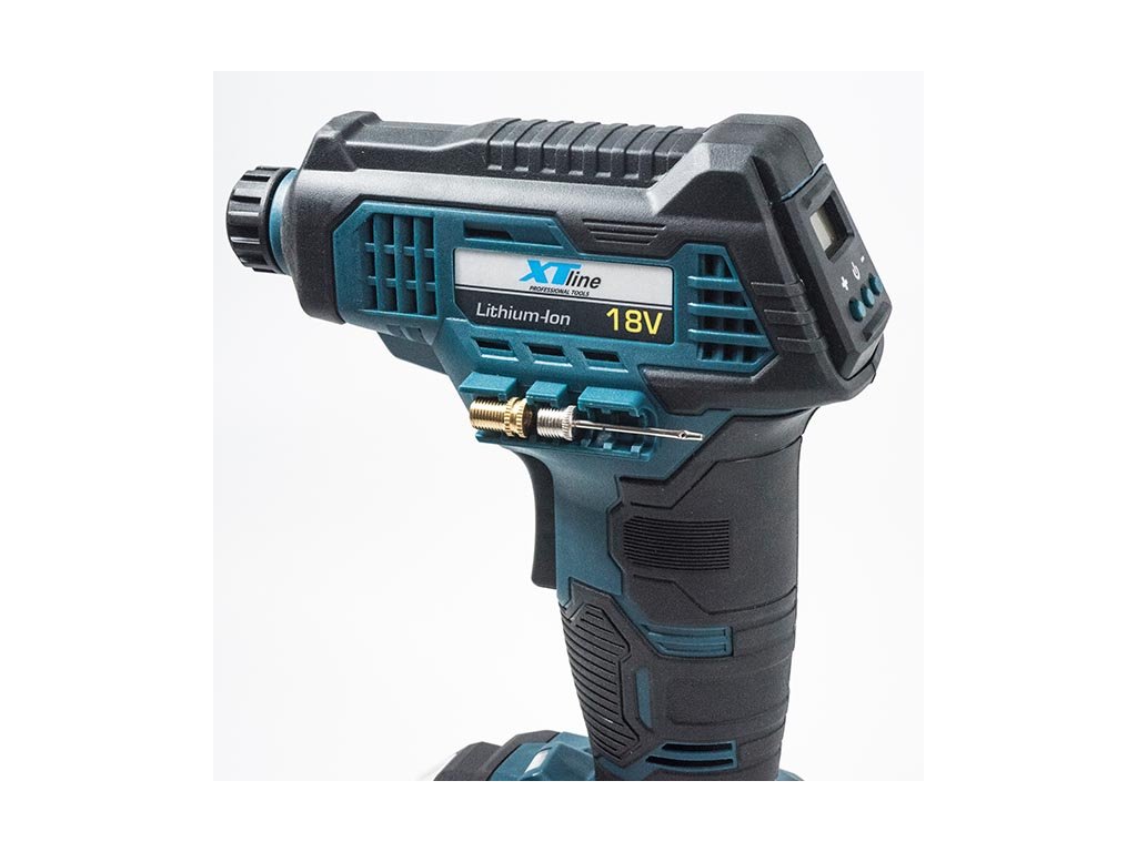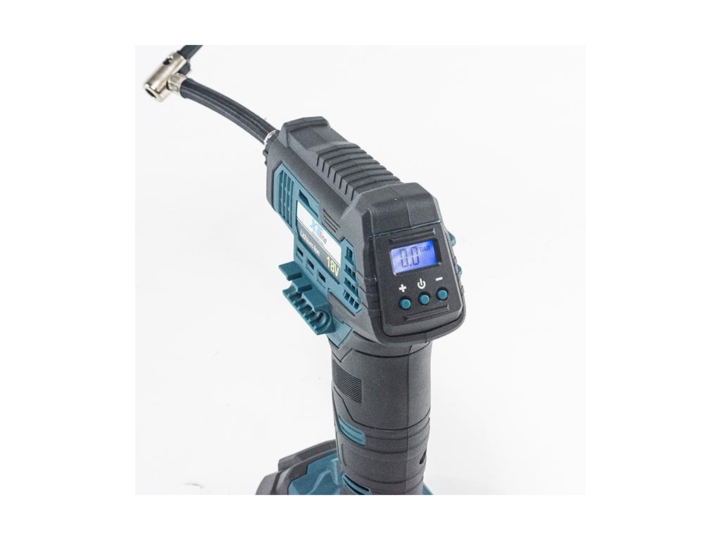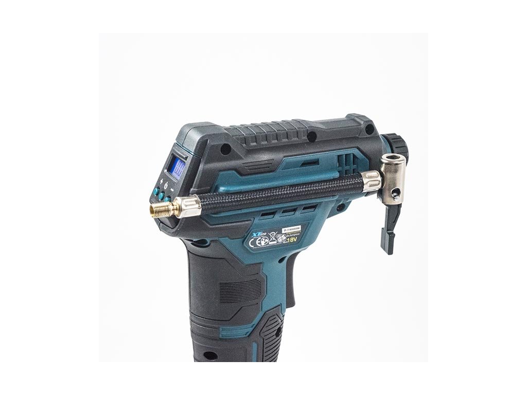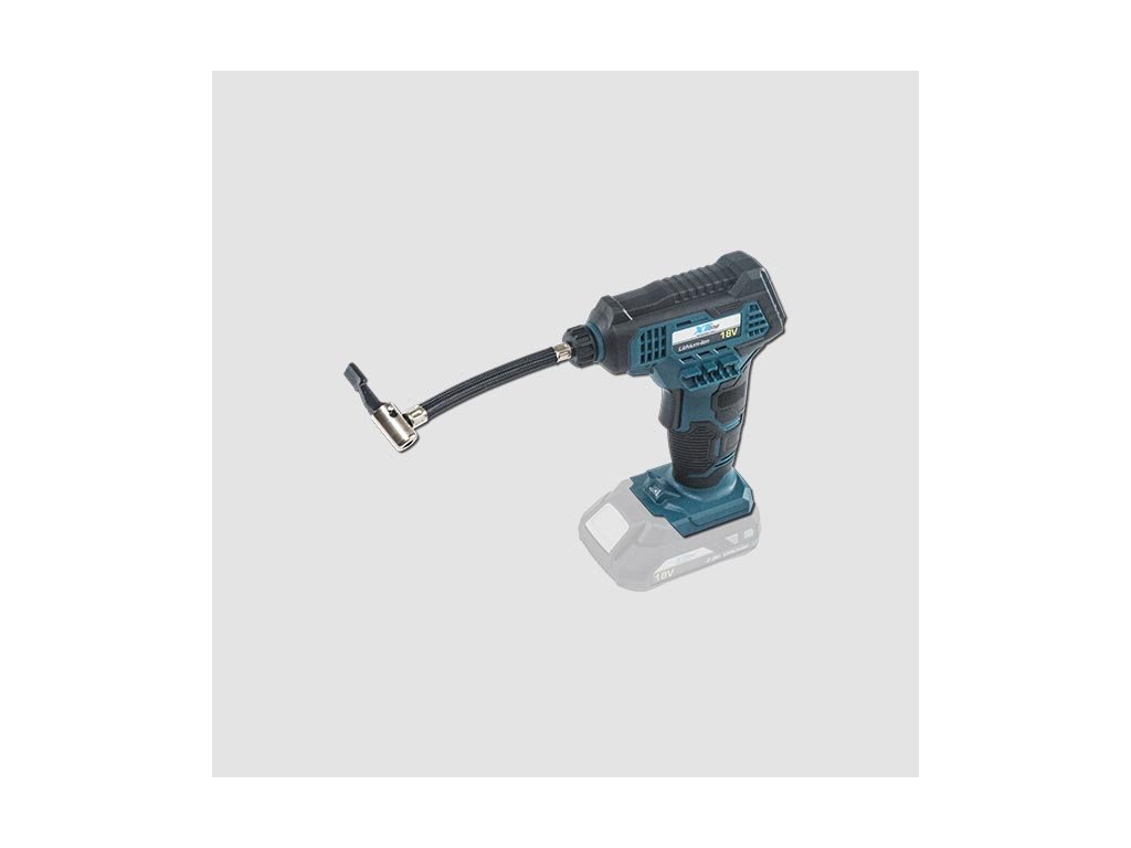Aku kompresor je určený k huštění jízdních kol a sportovních potřeb. Kompresor je bez akumulátoru a bez nabíječky. Nabíječku a samostatné akumulátory 2,0 Ah nebo 4,0 Ah je možné dokoupit zvlášť. Pistolový tvar s ergonomickou rukojetí zaručuje pohodlné používání