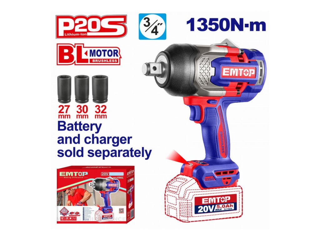 Aku rázový utahovák 20V 1350Nm 3/4" solo