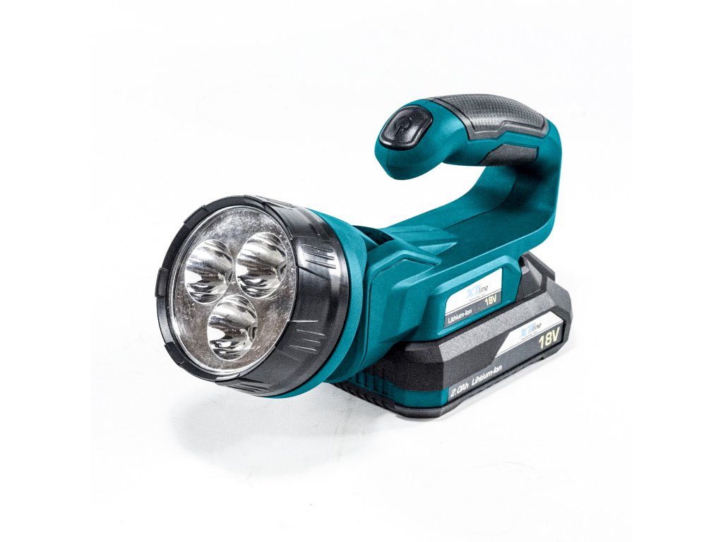 Aku svítilna vybavená 3 vysoce kvalitními LED diodami o výkonu 3W. Diody se vyznačují širokým úhlem svícení 90 stupňů a velkým světelným tokem 260 lumenů. Svítilna je bez akumulátoru a bez nabíječky. Nabíječku a samostatné akumulátory 2,0 Ah nebo 4,0 Ah je možné dokoupit zvlášť.