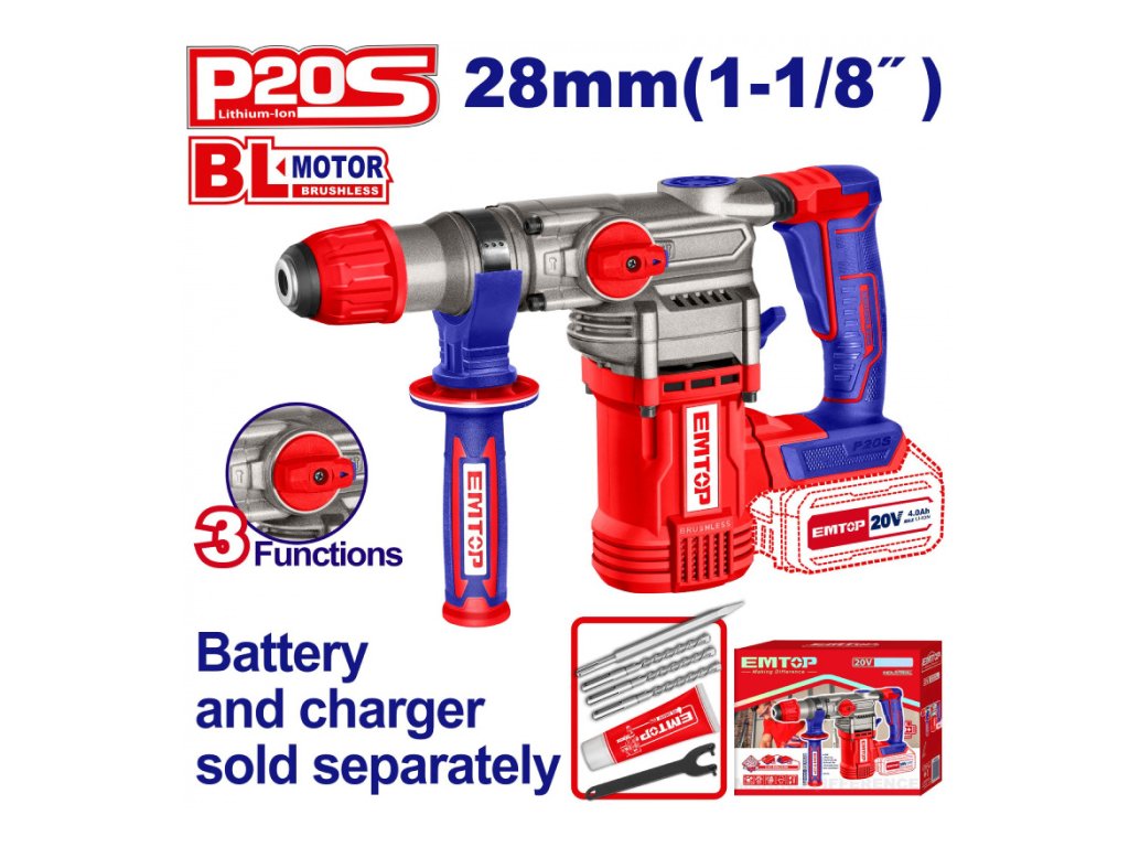 Aku vrtací a sekací kladivo 20V 28mm 4,5 J solo