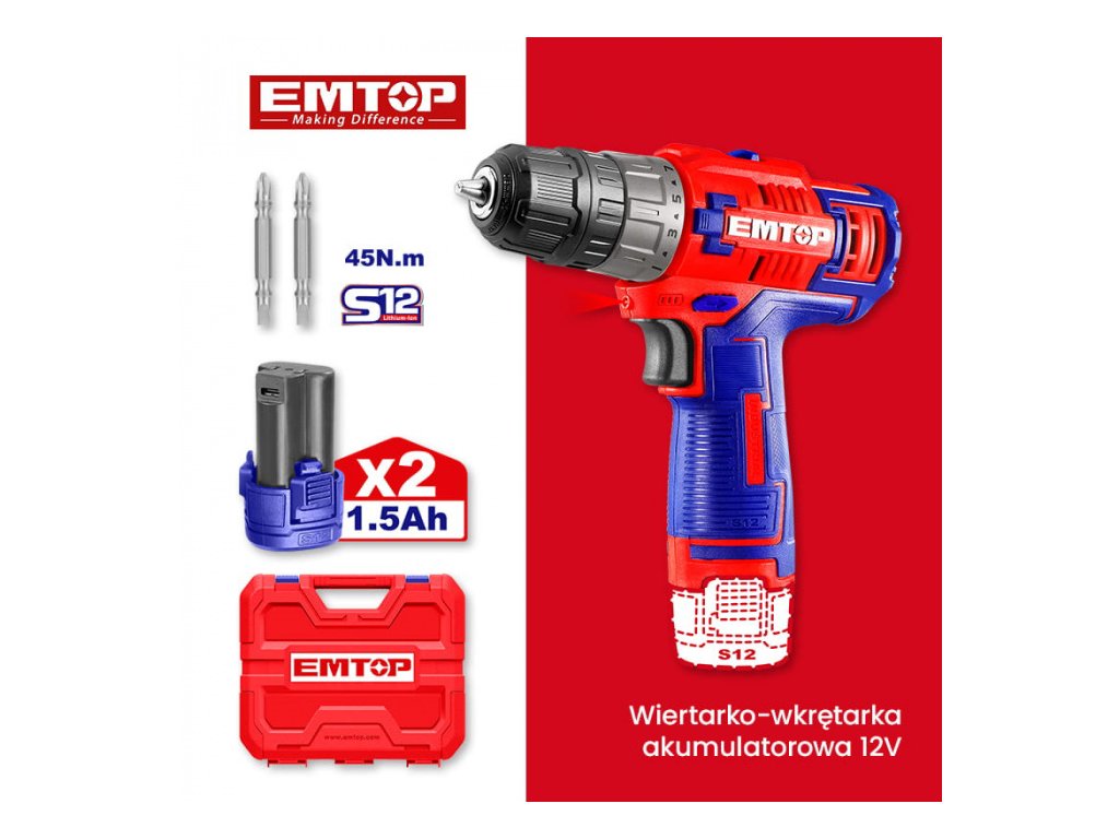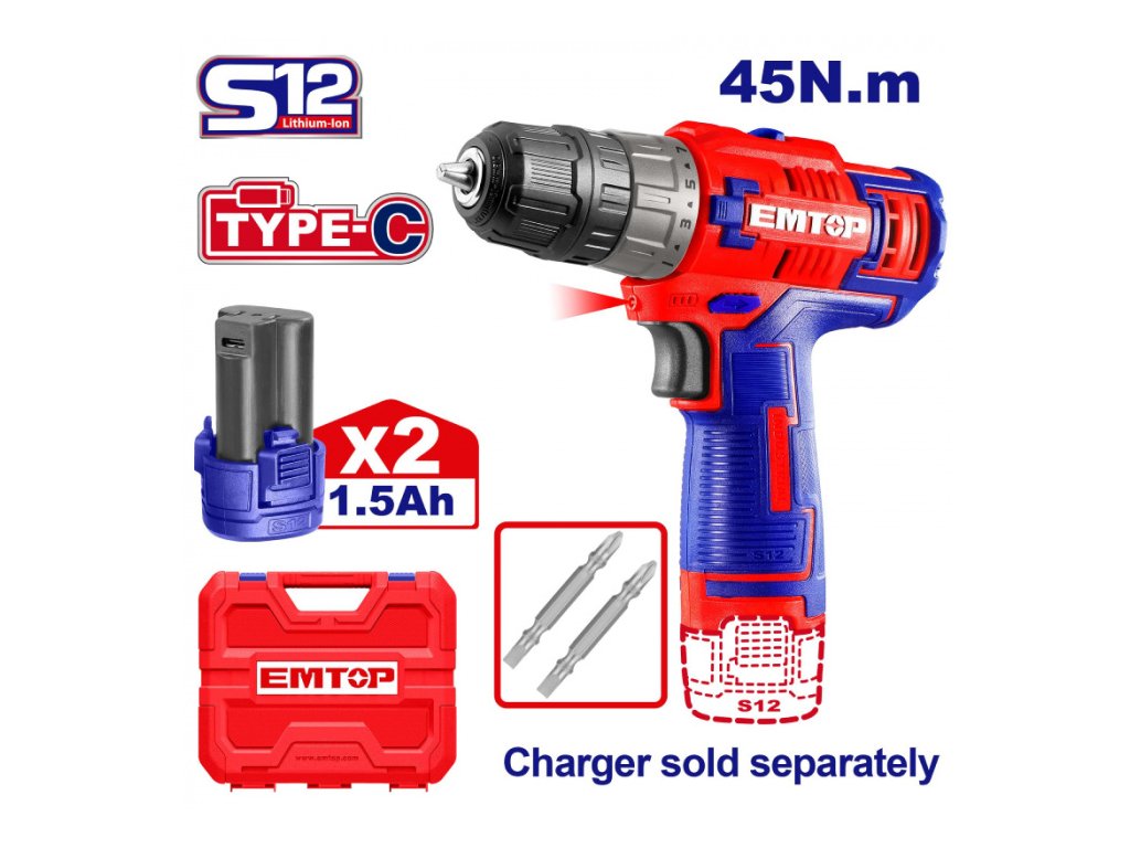 Aku vrtací šroubovák 12V 20Nm 2x1.5Ah