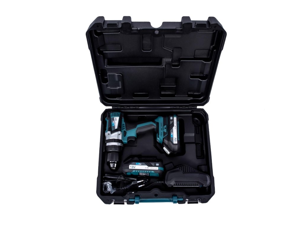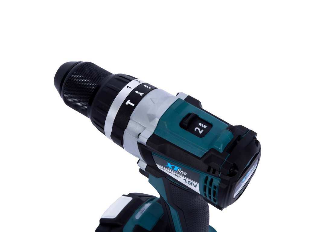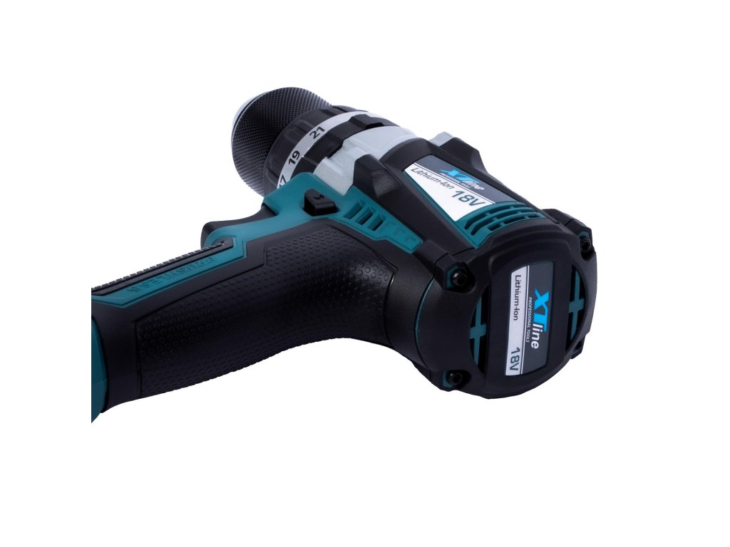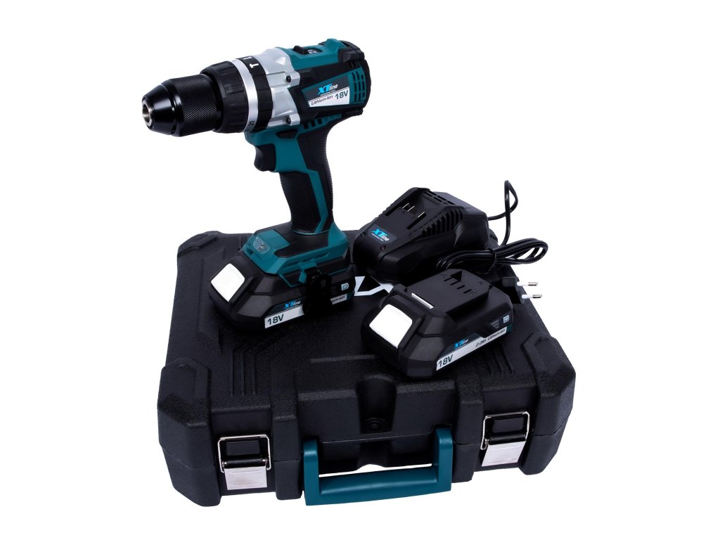 Aku vrtačka s příklepem bezuhlíková 18 V, 65 Nm + 2 baterie 2.0 Ah + nabíječka 2.4 A XTline