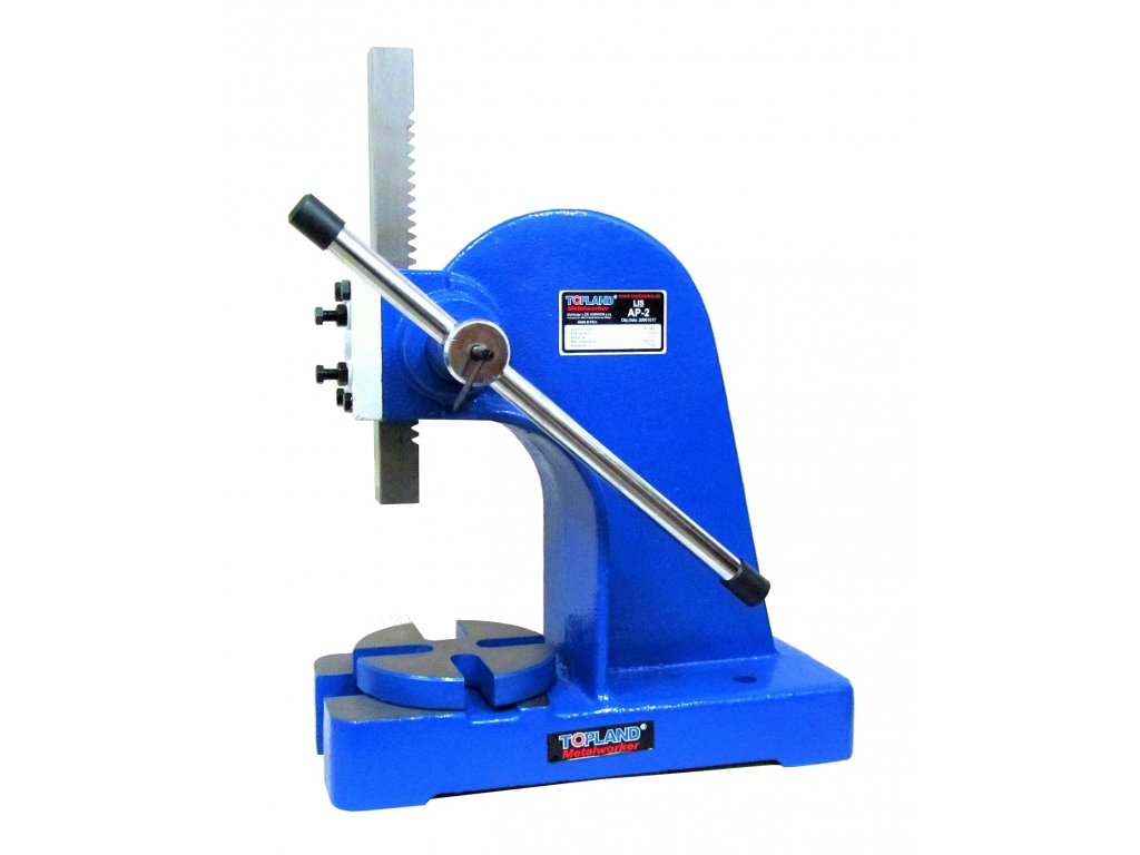 AP-2 ruční mechanický lis s otočnou pracovní deskou TOPLAND. V pracovní desce jsou čtyři volitelné šířky drážek. Používá se na lisování a rozlisování ložisek, pouzder a mnoha dalších dílců. Lis je stabilní konstrukce z kvalitní šedé litiny. Najde uplatnění ve strojírenství, zámečnictví i autoservisech.