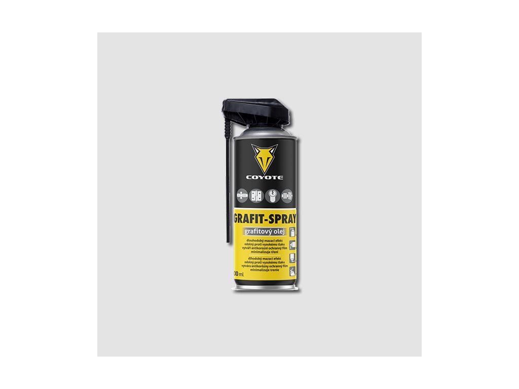 Grafit spray je přípravek vytvářející ochranný film, který zajišťuje dlouhodobý mazací efekt. Výborné využití na panty, kolejnice, hřídele, zámky, navijáky, šrouby, matice a mnoho dalších. Použití: panty, závěsy, kolejnice, hřídele, zámky, navijáky, šrouby, matice, kulové čepy, listových per a dalších.Doplňkové parametry