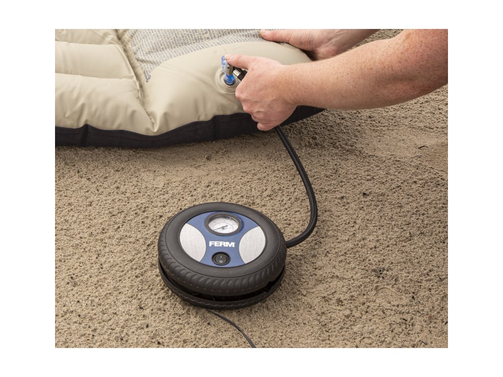 CRM1055 - Mini kompresor 12V (autozásuvka) je jednopístový bezolejový vzduchový kompresor, který je určen pro malé práce v domácnosti a domácím prostředí při činnostech, a to zejména k plnění pneumatik automobilů, motocyklů a kol na cesty při foukaní matrací, míčů atd.