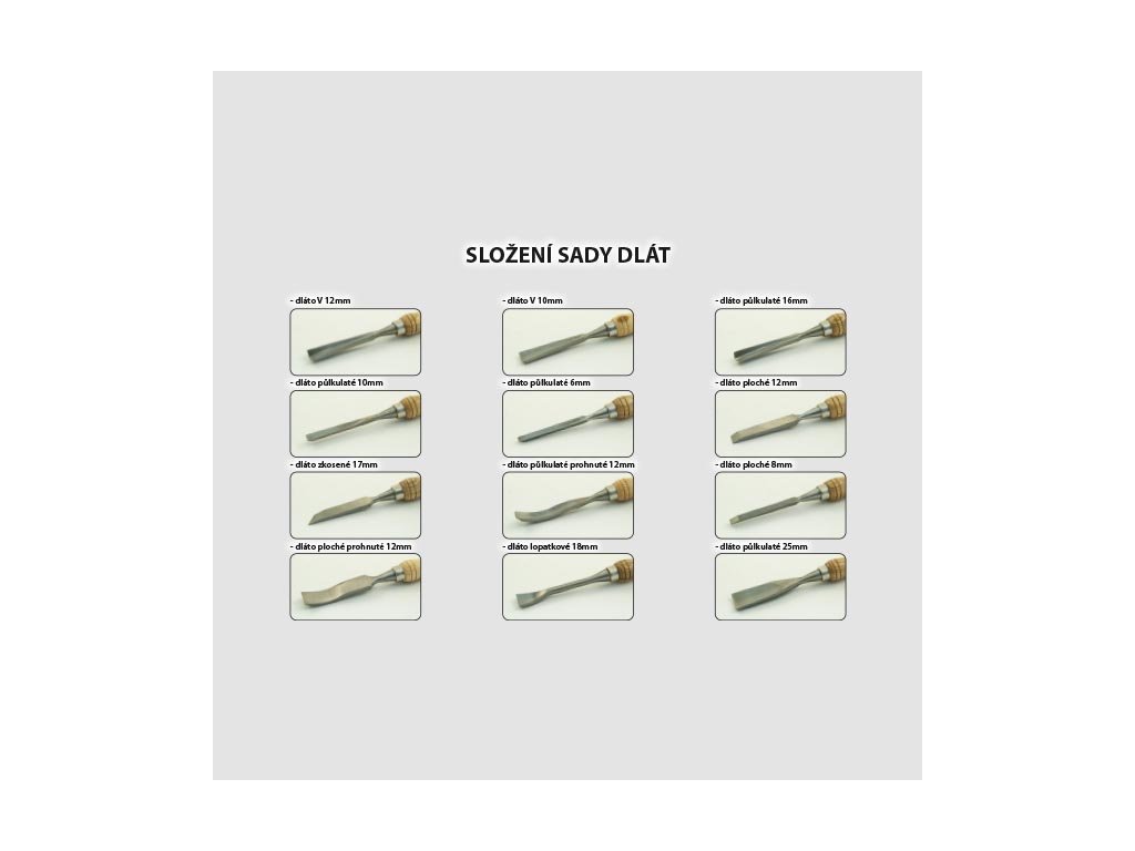 dláta: ploché kosé, duté, duté mělké a hluboké, úhlovéDoplňkové parametry