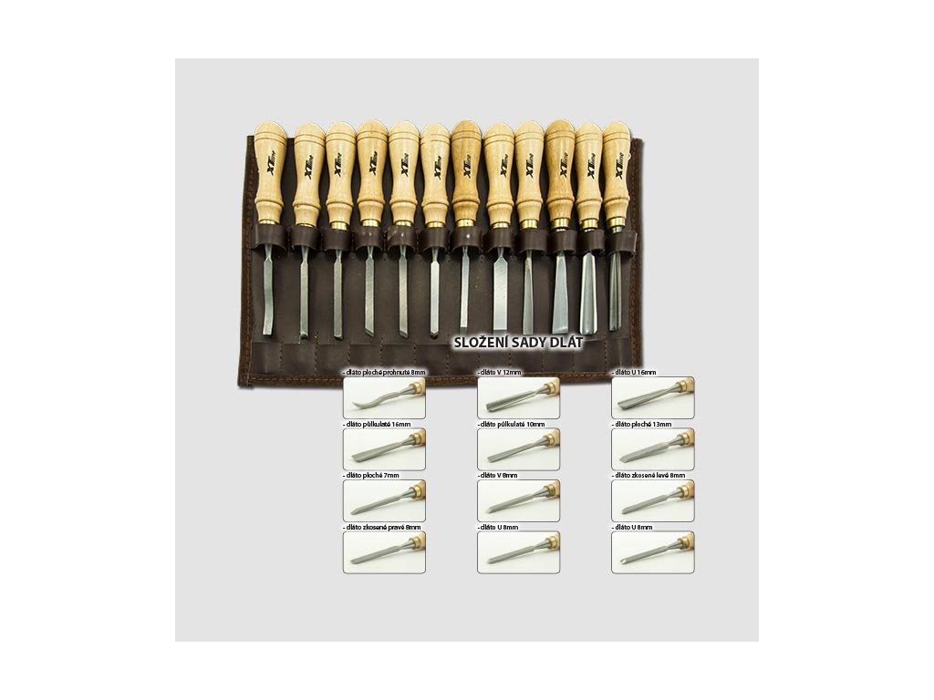 Dláta řezbářská, sada 12dílů, textilní obal XT790400