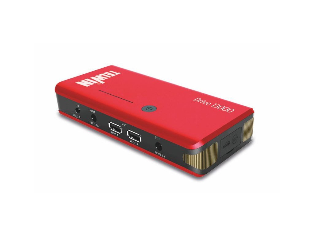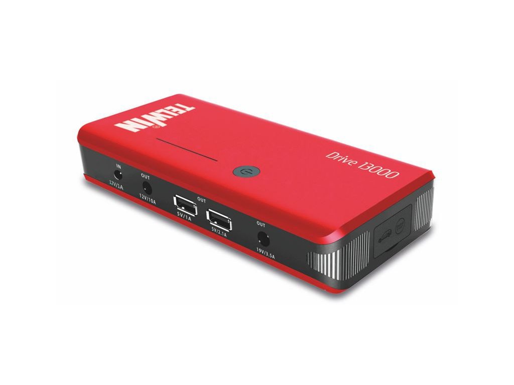 Drive 13 000 - je 12V ultra-kompaktní multifunkční nouzové přenosné startéry, určené pro motocykly, automobily atd. vybaveny jsou dvěma USB výstupy (1 A-2,1 A) pro nabíjení (Power Bank) pro elektronická zařízení (tablety, komunikátory, MP3 přehrávače, kamery atd.), dva 12 / 19V výstupy k napájení notebooků a jiných zařízení a vysoce intenzivní nouzové LED osvětlení. Využívá lithium baterii s vysokou účinností LiPol, které poskytují rychlé a úplné nabití a informuje pomocí řady LED diod. Ochrana proti přepólování. Dodáváno se startovacími kabely, konektorů pro různé mobilní zařízení, konektoru zapalovače a nástěnného trafa.