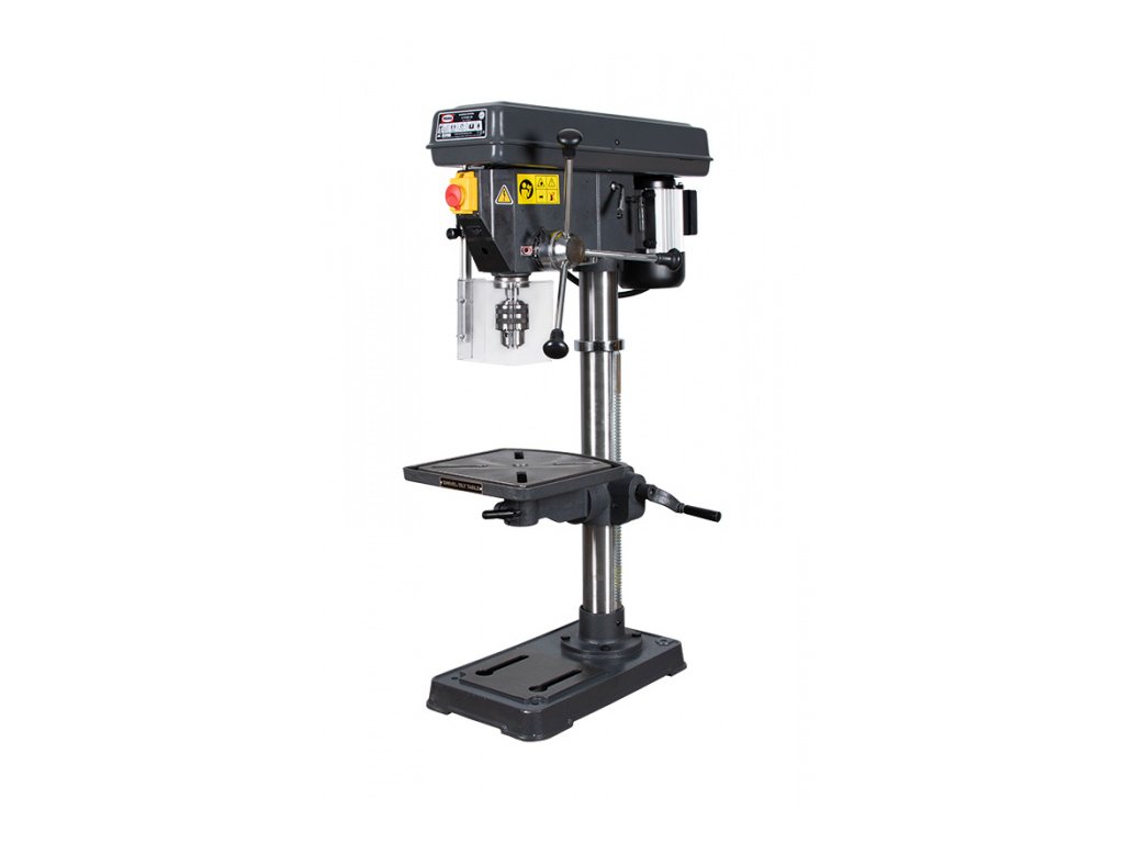 E-1516B/230 - Stojanová vrtačka je nadstandardně vybavený model malé stojanové vrtačky je konstruován pro vrtání, zahrubování a vystružování . Vhodné využití najde hlavně v zámečnických dílnách, opravárenských podnicích, truhlárnách, skladech, ale i u náročných domácích kutilů, řemeslníků atd. Vrtačka je určena pro vrtání do kovů, plastu nebo měkkého i tvrdého dřeva.
