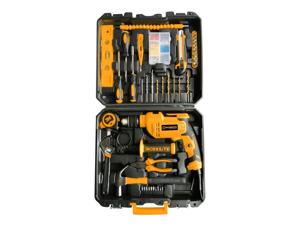 Máte málo místa pro vlastní dílnu? Tahle sada WORKSITE nabízí skvělé řešení. V jednom balení nejdete v podstatě kompletní vybavení domácí hobby dílny. Výkonnou příklepovou vrtačku EID448 vhodnou pro vrtání do různých materiálů včetně zdiva a pórobetonu doplňuje sada vrtáků, bitů a šroubováků či kleští nejrůznějších velikostí a provedení.