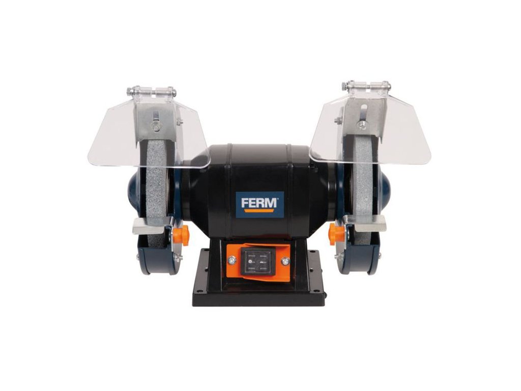 Dvoukotoučové stolní brusky Ferm jsou správnou volbou pro domácí dílnu, údržbářské i ostatní drobné provozy. Samozřejmostí je především tichý chod stroje, otvory pro upevnění k podkladu či stojanu, stabilní opěrky materiálu, orovnávač kotoučů, chladící prostor, ochranné bezpečnostní kryty proti odlétávání částic při broušení, možnost broušení pilových kotoučů, vrtáků a drobných obrobků.