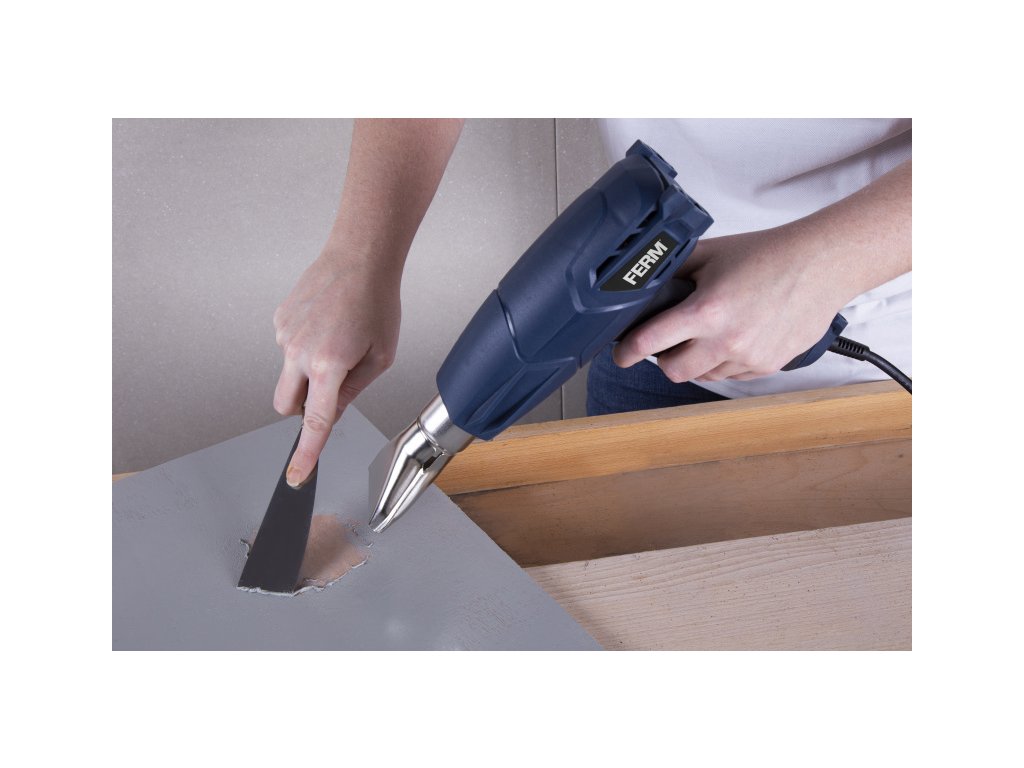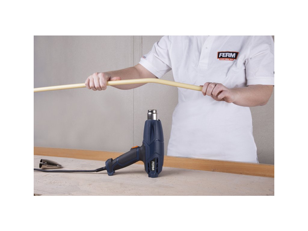 HAM1023 - Opalovací pistole 2000W Všestranná horkovzdušná a opalovací pistole Ferm se dvěmi stupni průtoku vzduchu je určena k nahřívání povrchů za účelem odstranění nátěrů (barev, laků), sušení čerstvě nanesených nátěrů, tvarování a spojování umělých hmot (např. trubek) a asfaltových krytin, uvolňování lepených spojů, pájení a také k rozmrazování zmrzlé vody v potrubí.