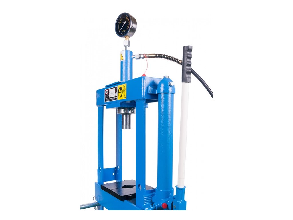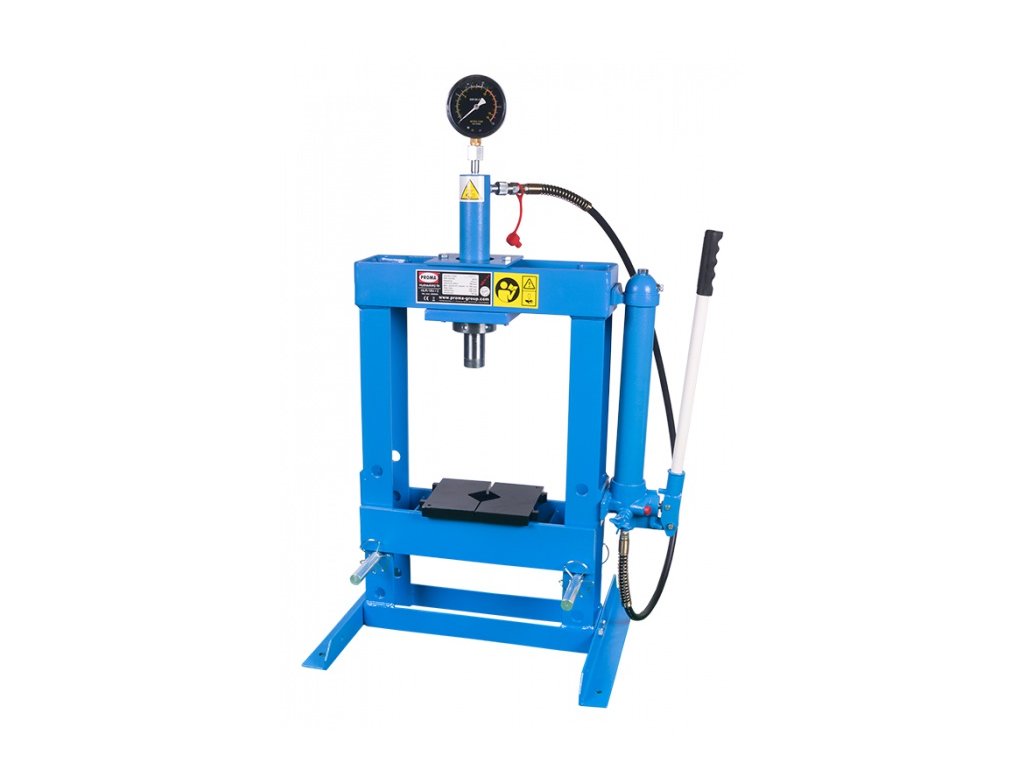 Hydraulický lis PROMA HLR-10U/2 se svařenou robustní konstrukcí pro universální/profesionální dílenské použití s ručním ovládáním hydraulické jednotky.