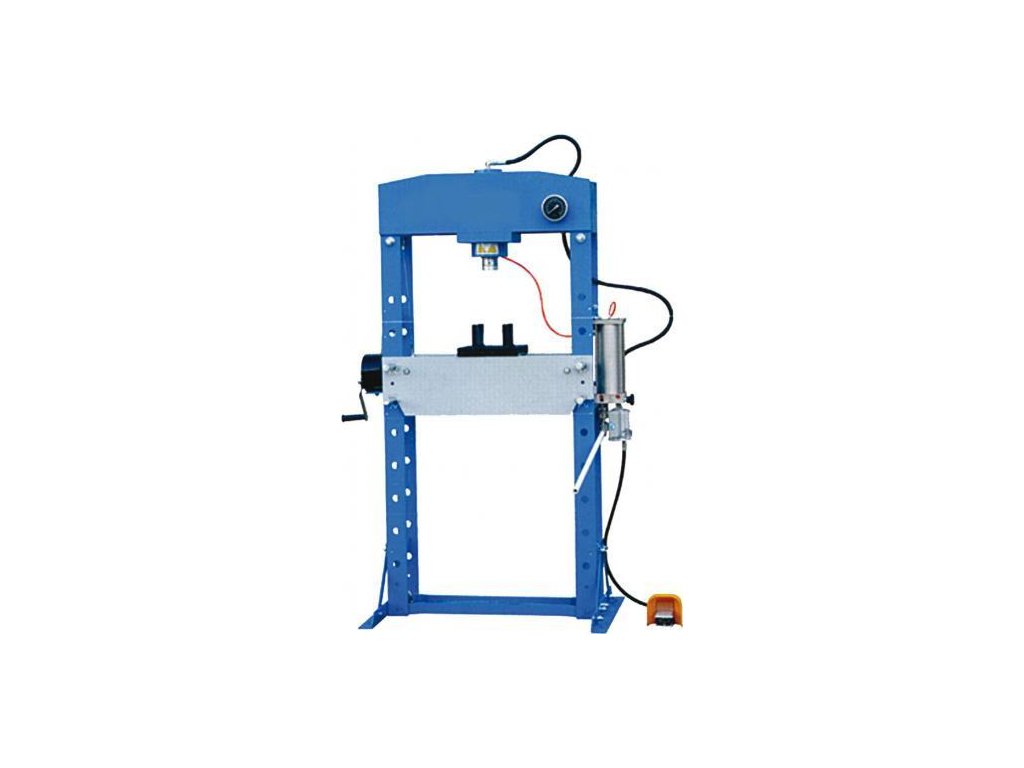 Hydraulický lis Proma HLR-50U/2A se svařenou robustní konstrukcí pro universální/profesionální dílenské použití s ručním ovládáním hydraulické jednotky nebo s ručním ovládáním pneumaticko-hydraulické jednotky pomocí multiplikátoru.