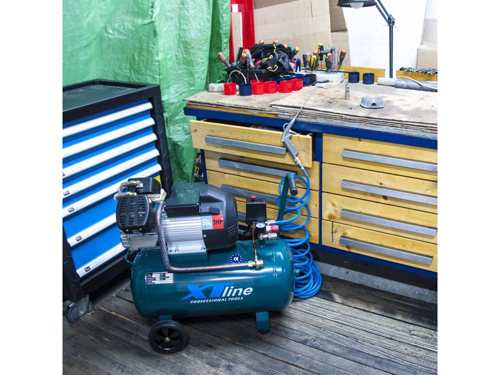 Kompresor dvoupístý XT line pro výrobu stlačeného vzduchu o maximálním tlaku 8 bar k provozu pneumatického nářadí, stříkacích pistolí, huštění pneumatik apod. Pumpa mazaná olejem prodlužuje životnost i při častém používání. Dva písty zaručují větší výkonost. 50l zásobník poskytuje vysoký litrový výkon.