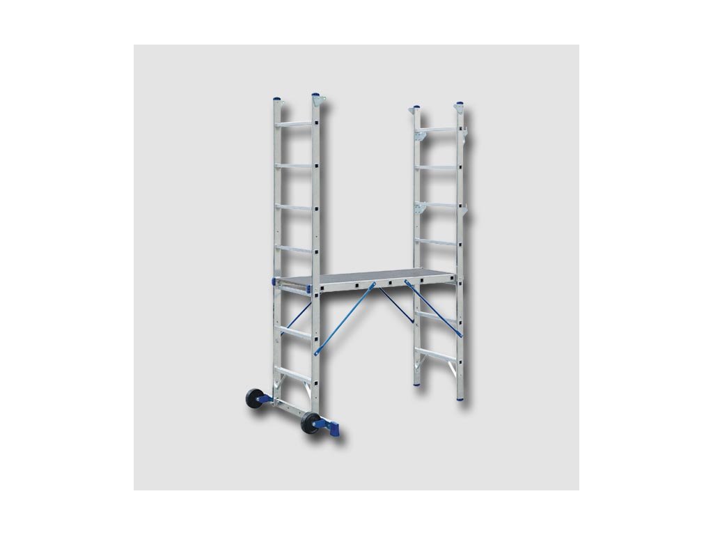 výška po plošinu: 95,2cm, šířka plošiny 120cm, celková výška plošiny 161,1cm výška po úpravě na dvojitý žebřík: 154,8cm výška po úpravě na žebřík 235,5cm (složený 183,5cm) nosnost: 150kg, 2x6 příčekDoplňkové parametry