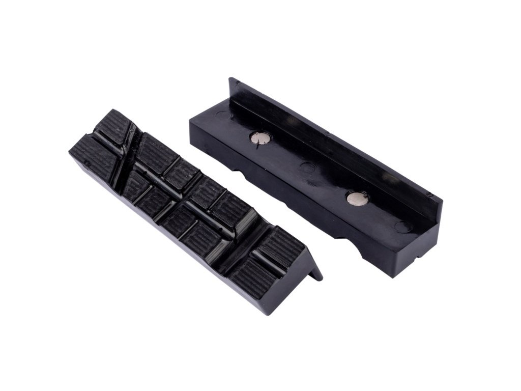 - Magnety: Integrované magnety bezpečně přidržují vložky v čelistech svěráku, což zaručuje stabilní a spolehlivé uchycení během práce.