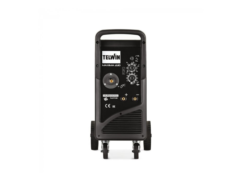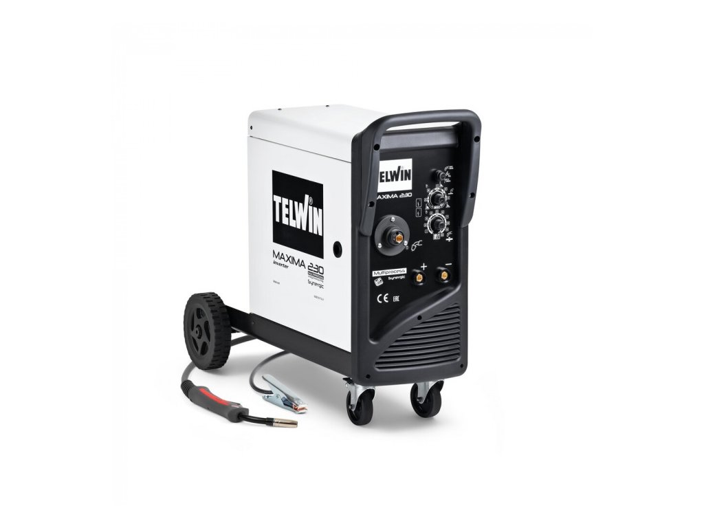 MAXIMA 230 SYNERGIC. Mikroprocesorem řízený invertorový drátový svařovací stroj MIG-MAG/PÁJENÍ/MMA/TIG DC-LIFT. Umožňuje velkou všestrannost při použití různých typů materiálů (ocel, nerezová ocel, hliník) a ve všech možných aplikacích, od údržby až po instalační práce. SYNERGICKÉ nastavení svařovacích parametrů usnadňuje používání produktů a poskytuje vynikající výsledky, a to vždy i méně zkušenému operátorovi.