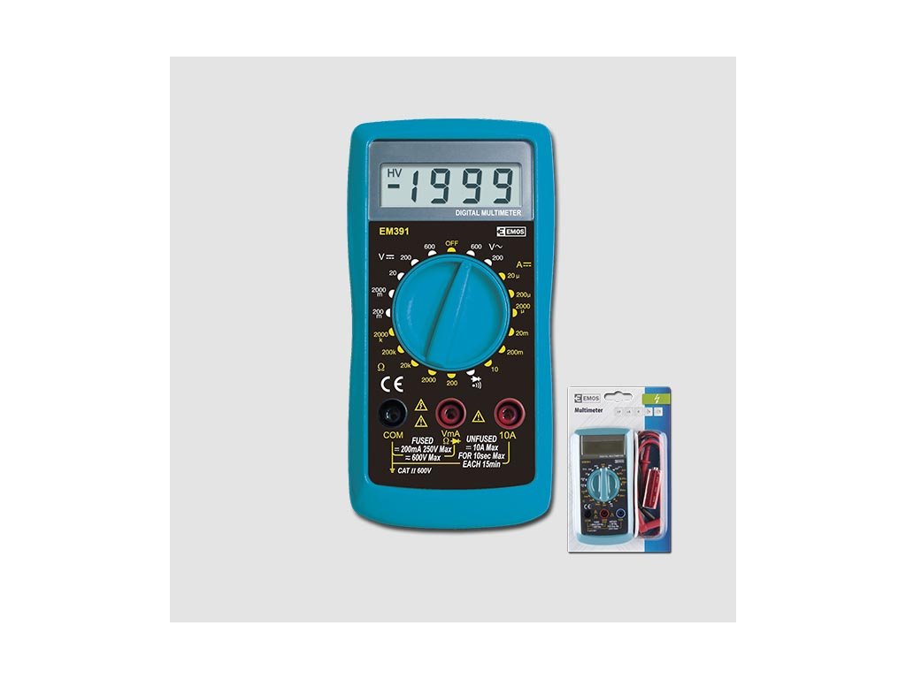 rozsah DC napetí: 200 mV - 300 V rozsah AC naptí: 200 V - 300 V rozsah DC proud: 20 uA - 10 A rozsah odporu: 200 Ohm – 2 MOhm test baterií: 1,5V/9V test diod, indikace slabé baterie, mící hroty a baterie součástí balení