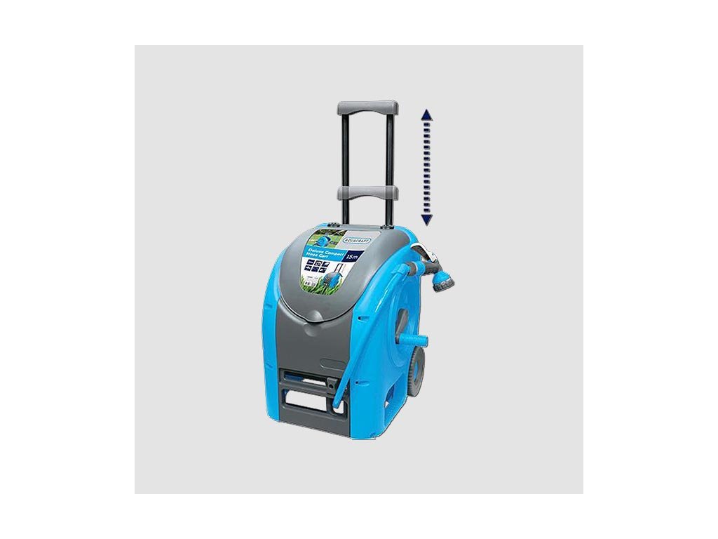Kompaktní vozík s koly a teleskopicky zasouvatelný rukojetí. Má inovativní vedení hadice pro jednoduché navíjení.