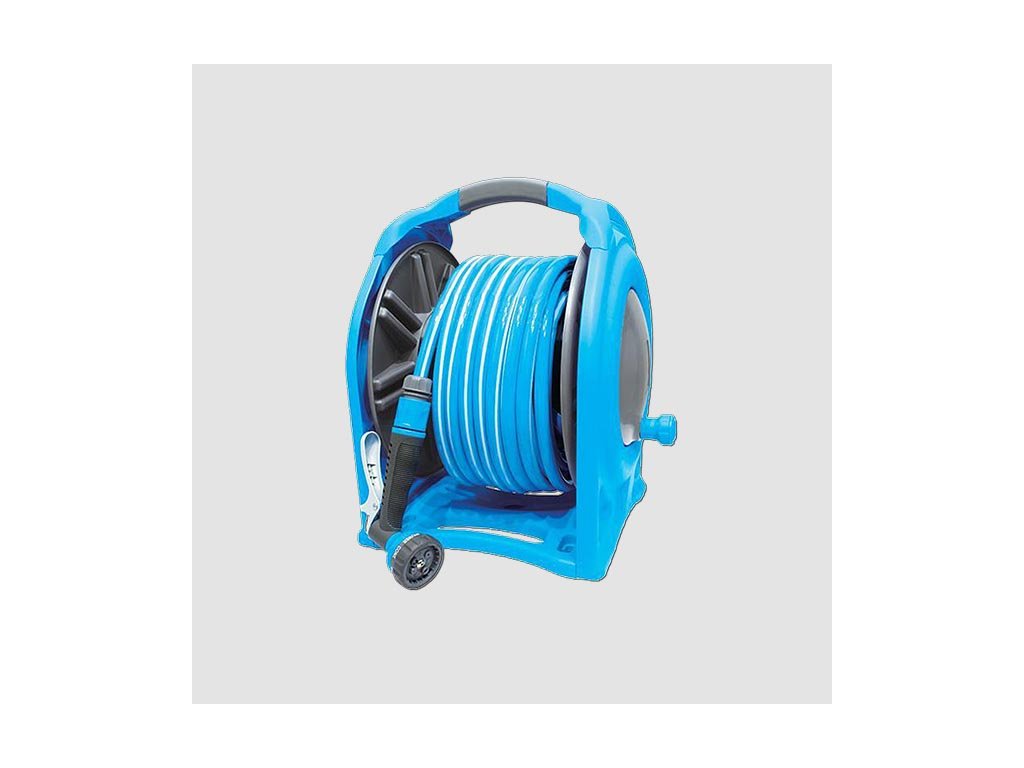 - určeno pro 1/2 hadici (25m) - možnost upevnění na stěnu - měkké gumové držadlo s cílem zajistit komfort - nakloněná spojka chrání hadici před zamotáním a ohýbáním
