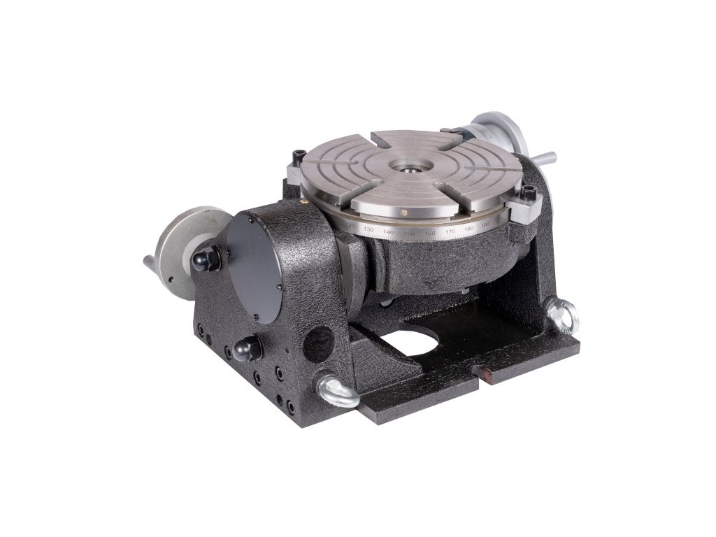 Deska stolu je dělena na 360° a může být naklápěna v úhlu 0-90°. Stůl je vybaven utahovacími kličkami a také pojistným mechanismem otáčecí kliky.