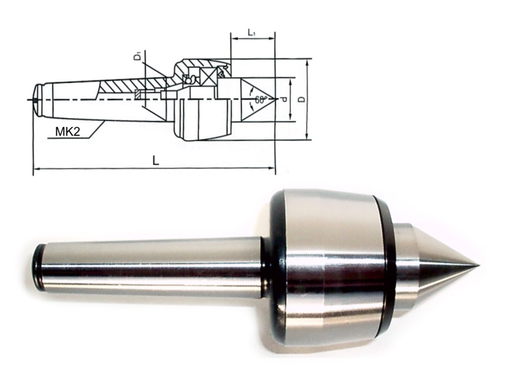 Otočný středící hrot s upínacím kuželem Mk2 je vyroben z vysoce legované oceli, tepelně zpracované a přesně broušené. Hrot má přesné valivé ložisko, které snáší radiální i axiální zatížení.