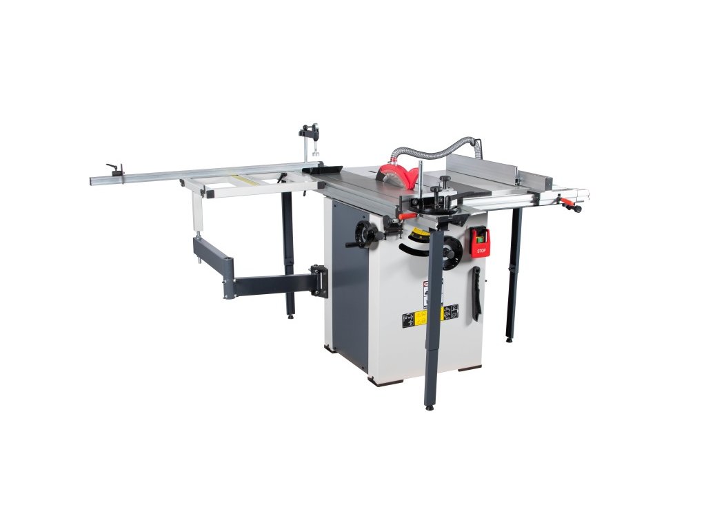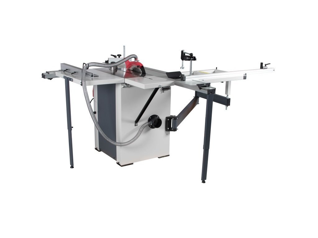 Stojanová kotoučová pila PKS-250PN je vhodná pro příčné i podélné dělení dřevěných materiálů. Vyznačuje se optimálním rozsahem otáček, který umožňuje využití nástrojů s plátky ze slinutých karbidů. Velkou výhodou je základní litinový stůl s dlouhým pojezdovým stolem, kterému zaručuje přesnost rybinové vedení. Kotoučová pila umožňuje pomocí velkých kol snadné výškové nastavení prořezu materiálu a nastavení úhlu kotouče. Při maximálních prořezech u tohoto typu se pila vyznačuje velkým výkonem a tuhou konstrukcí.