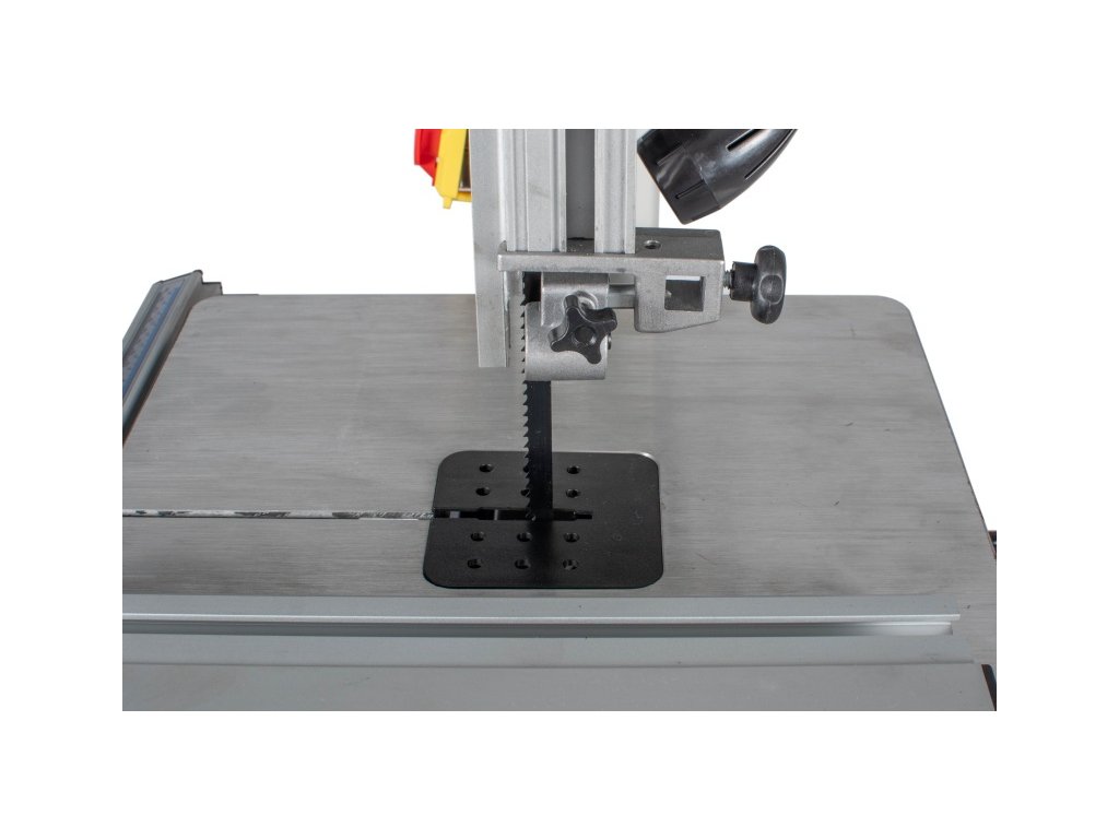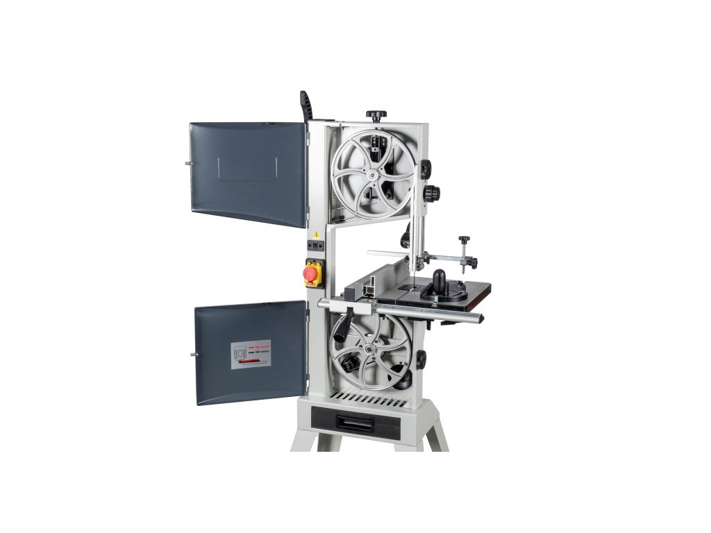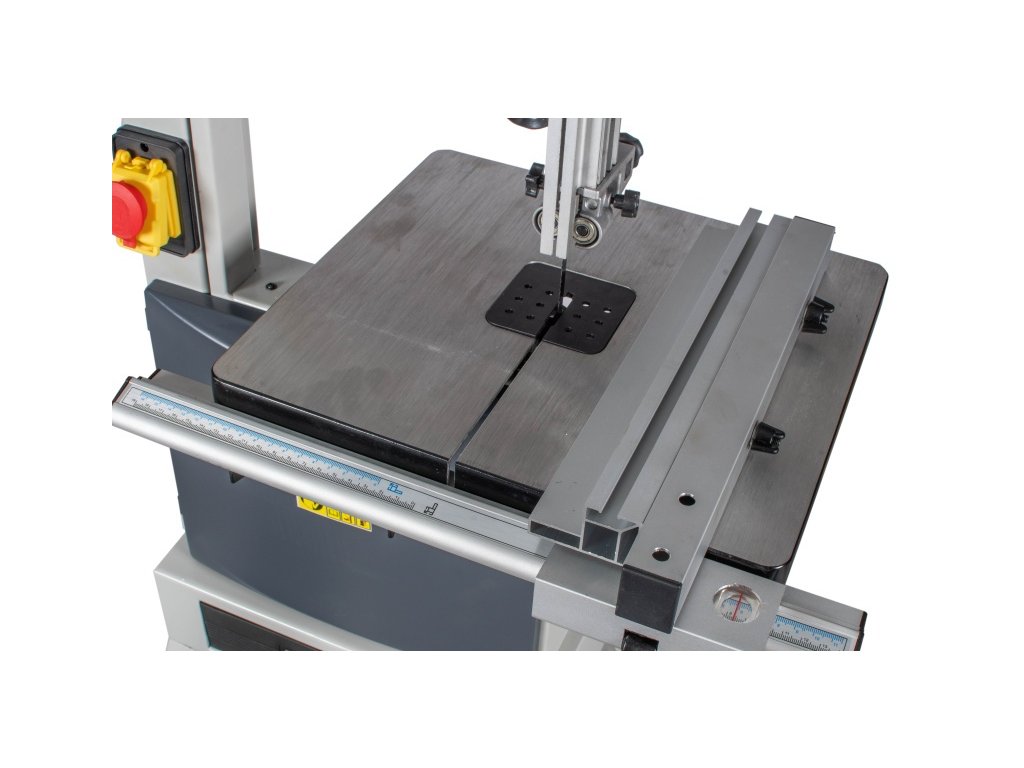 Pásová pila na dřevo je určena pro dělení měkkého i tvrdého dřeva, dřevotřískových a překližkových desek. Pohon pilového pásu zajišťuje jednofázový asynchronní elektromotor s kotvou nakrátko, který je ovládaný dvoutlačítkovým ovladačem , který se spouští na podpětí s funkcí tlačítka pro nouzové zastavení stroje. Pracovní stůl z hliníkové slitiny je možné naklápět v rozsahu 0 – 45°. Stůl je vybaven podélným vodícím a úhlovým příložníkem. Pila je opatřena přírubou pro připojení na odsávací zařízení. V závislosti na použití druhu pilového pásu, lze na stroji řezat různé materiály (dřevo, plast a neželezné kovy), tak i různými technikami, při použití širších pásů lze řezat rovné řezy a pokud použijete užších pásy, oceníte je především při vyřezávání.