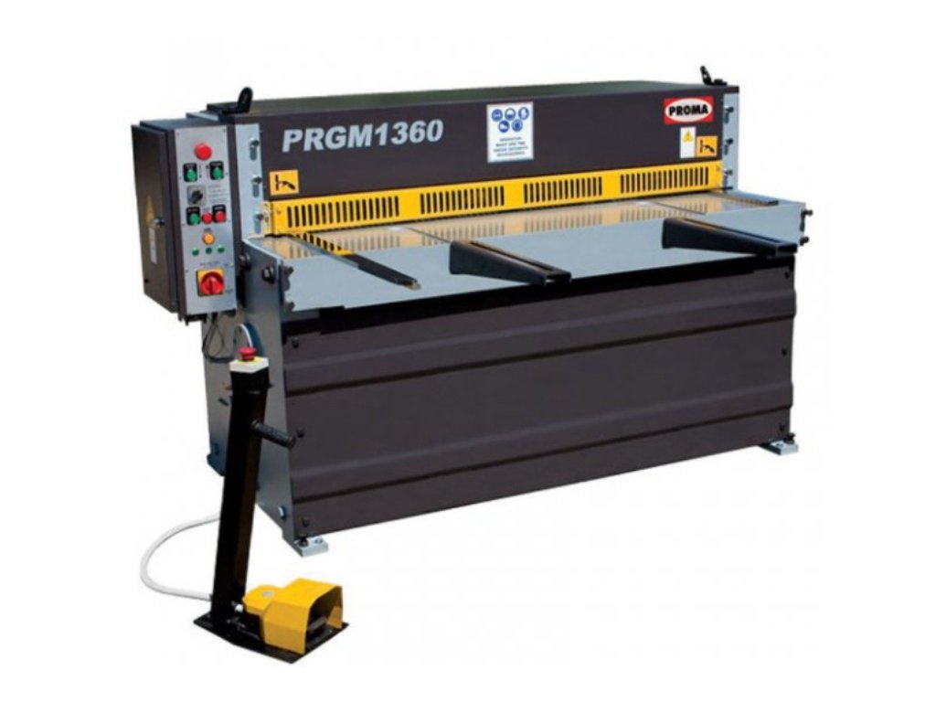 Tabulové nůžky PRGM-1360 se vyznačují masivní, tuhou konstrukcí a vysokou spolehlivostí. Činné části nůžek jsou vyrobeny z vysoce kvalitní nástrojové oceli a jsou kaleny a broušeny. Zadní doraz se přestavuje ručním kolem, což umožňuje snadnou změnu stříhané délky.