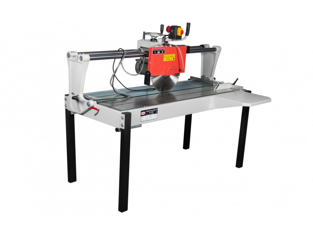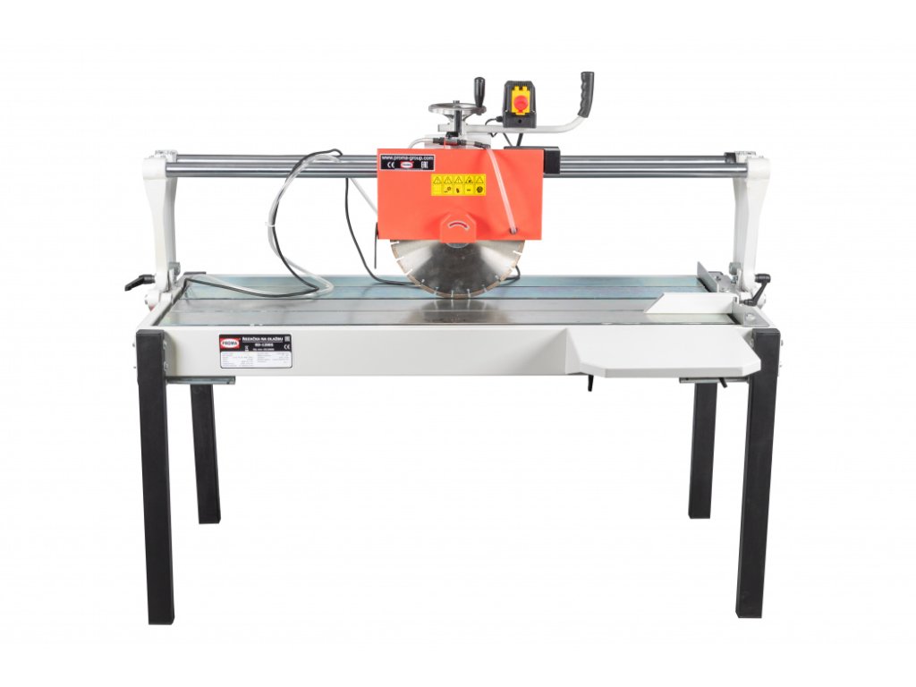 RD-1200S - Řezačka na dlažbu je určena pro dělení betonové, kamenné nebo keramické dlažby diamantovým kotoučem o průměru 350 mm s kapacitou řezu 1200 x 135 mm. Stroj je vybaven systémem výškového i úhlového nastavení kotouče a pojezdovým systémem. Jeho výhodou je vestavěné chlazení řezu a zdroj laserového paprsku ukazující směr řezu..