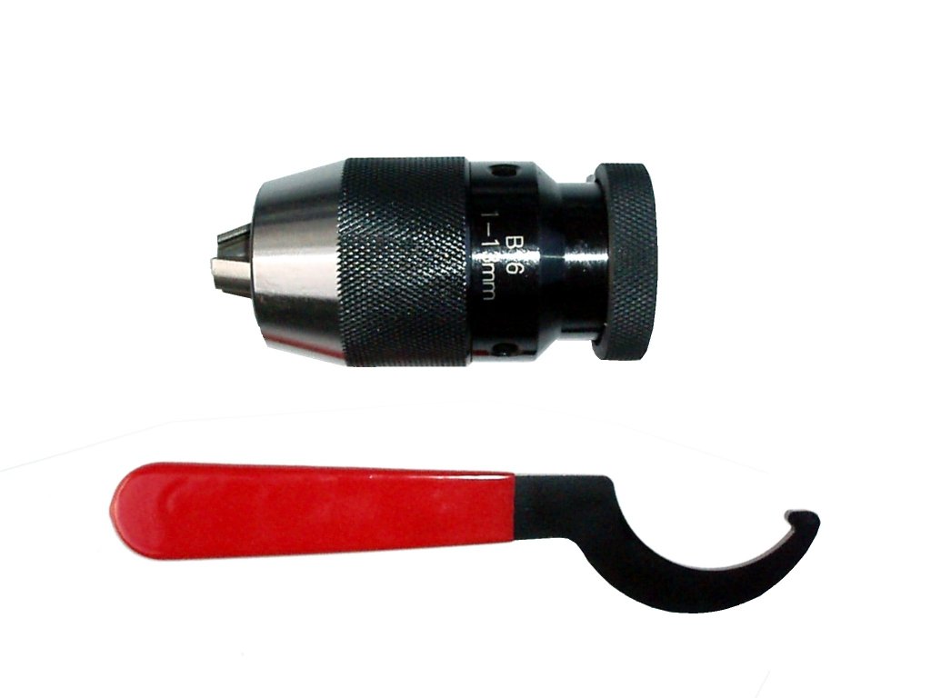 Rychloupínací vrtací sklíčidlo (hlavička) s upínacím kuželem B16 pro průměry nástrojů 1-13 mm se používá k vrtačkám nebo soustruhům. Sklíčidlo vyniká vysokou upínací silou, jednoduchou a rychlou výměnou upnutého nástroje. Dodáváno včetně klíče.