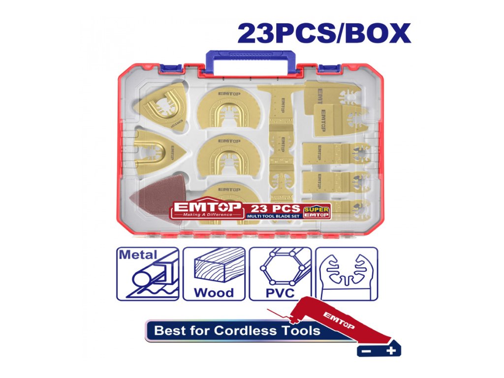 Sada 23 čepelí pro multifunkční oscilační brusku v plastovém boxu
