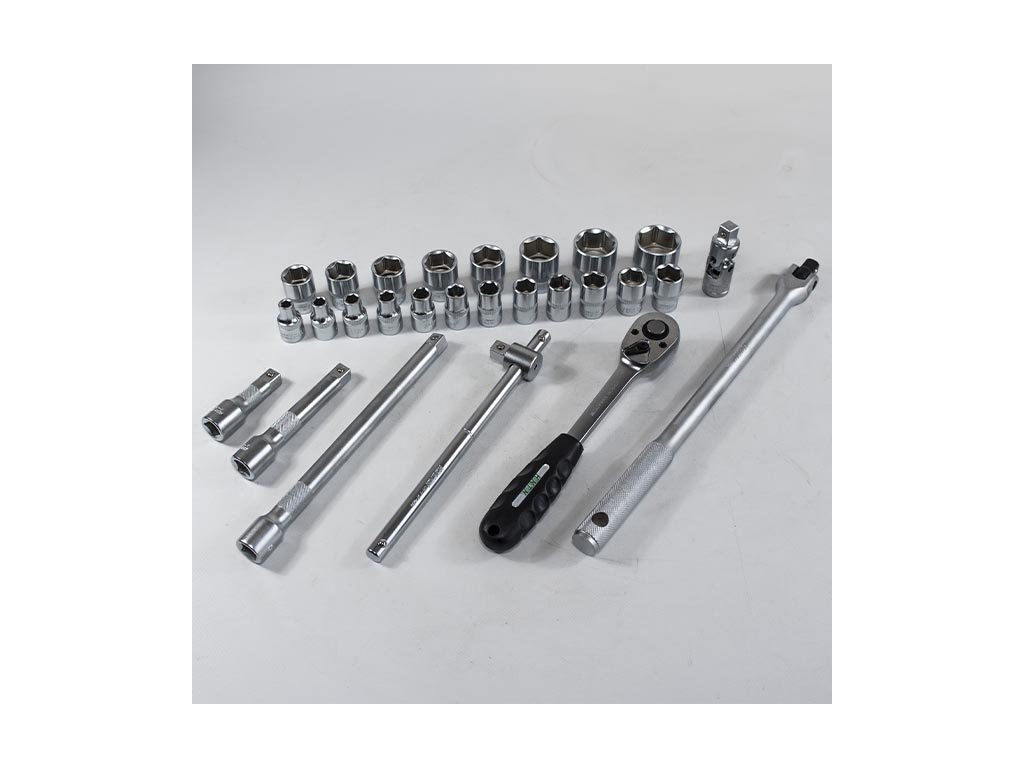 - 20x 1/2" hlavice: 8, 9, 10, 11, 12, 13, 14, 15, 16, 17, 18, 19, 20, 21, 22, 23, 24, 27, 30, 32mm