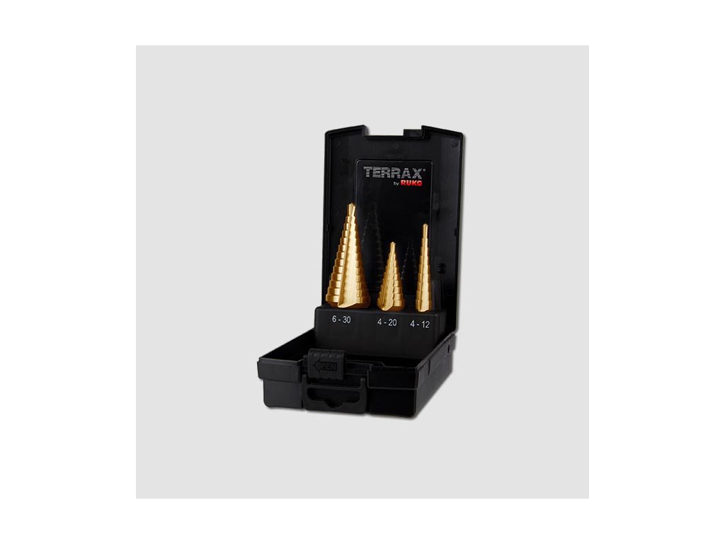Sada 3dílů stupňovitých vrtáků do kovu HSS-Tin Terrax RUA101126TRO