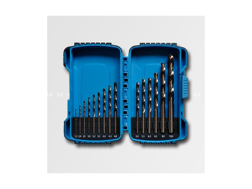 Sada 15 vrtáků do kovu vyrobených z rychlořezné oceli HSS s příměsí 5% kobaltu, který zvyšuje tvrdost vrtáku a prodlužuje jeho životnost. Dělená špička broušená pod úhlem 135° vyžaduje menší tlak při vrtání a zabraňuje pohybu vrtáku po povrchu. Vhodné pro vrtání oceli, nerezové oceli, litiny a jiných kovů. - válcová stopka - plastová kazeta s pogumovanými rohy - špička SPLIT-POINT 135° pro dokonalé vystředění a menší tlak při vrtání - vybroušená šroubovice rychle odebírá vrtaný materiál