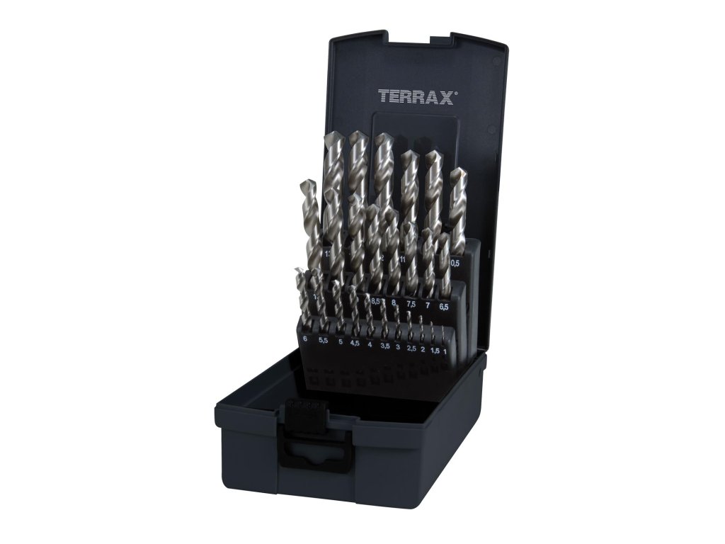 Sada vrtáků do kovu vybrušované Terrax - plastový obal | 1,5-13 mm 25 dílů