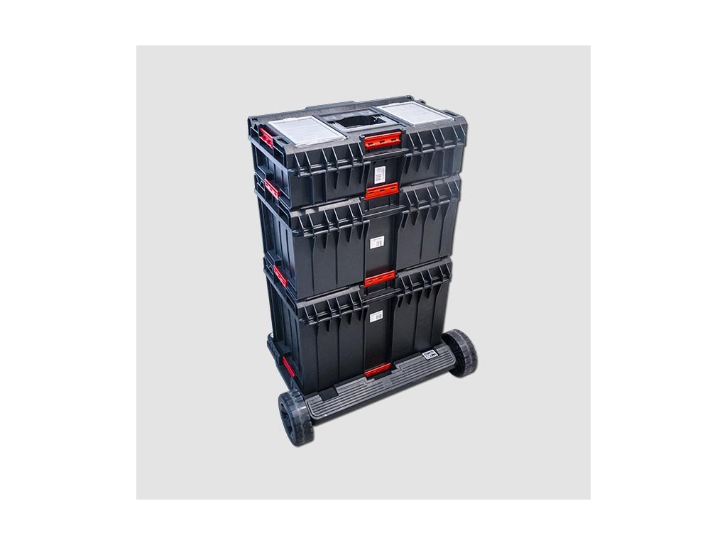 Multifunkční sada 3 ks plastových boxů s manipulačním podvozkem na kolečkách