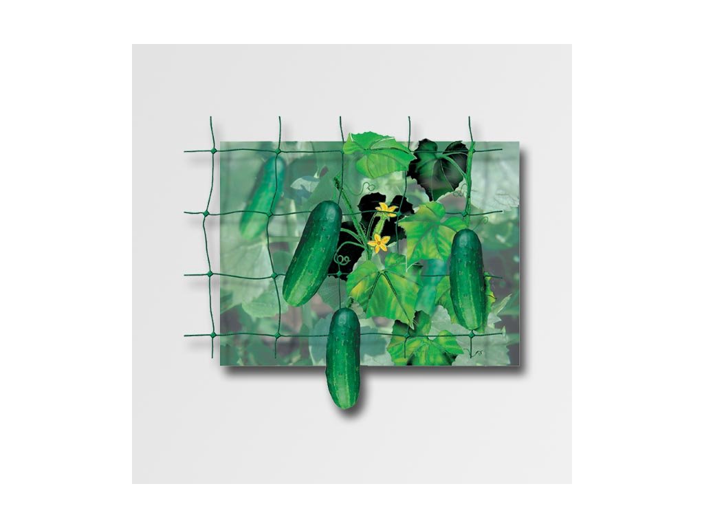 Síť je určena pro vertikální pěstování okurků a veškeré popínavé zeleniny a zahradních rostlin. Výrazně zvyšuje úrodu, prodlužuje plodnost rostlin a oddaluje napadení plísňovými chorobami.