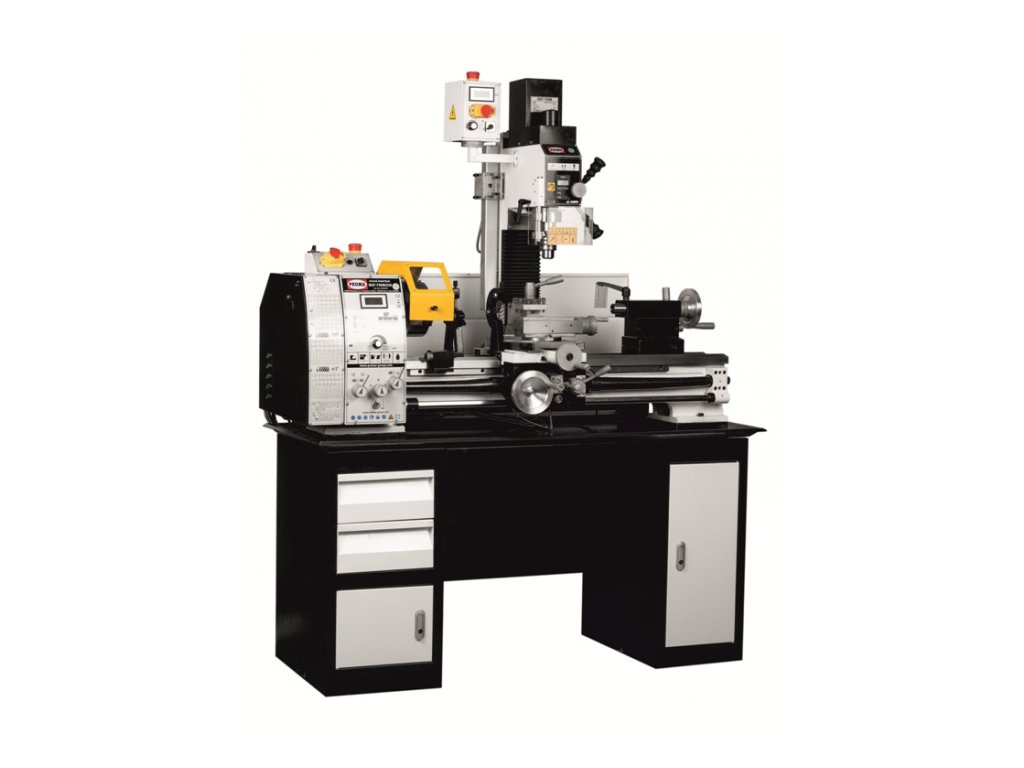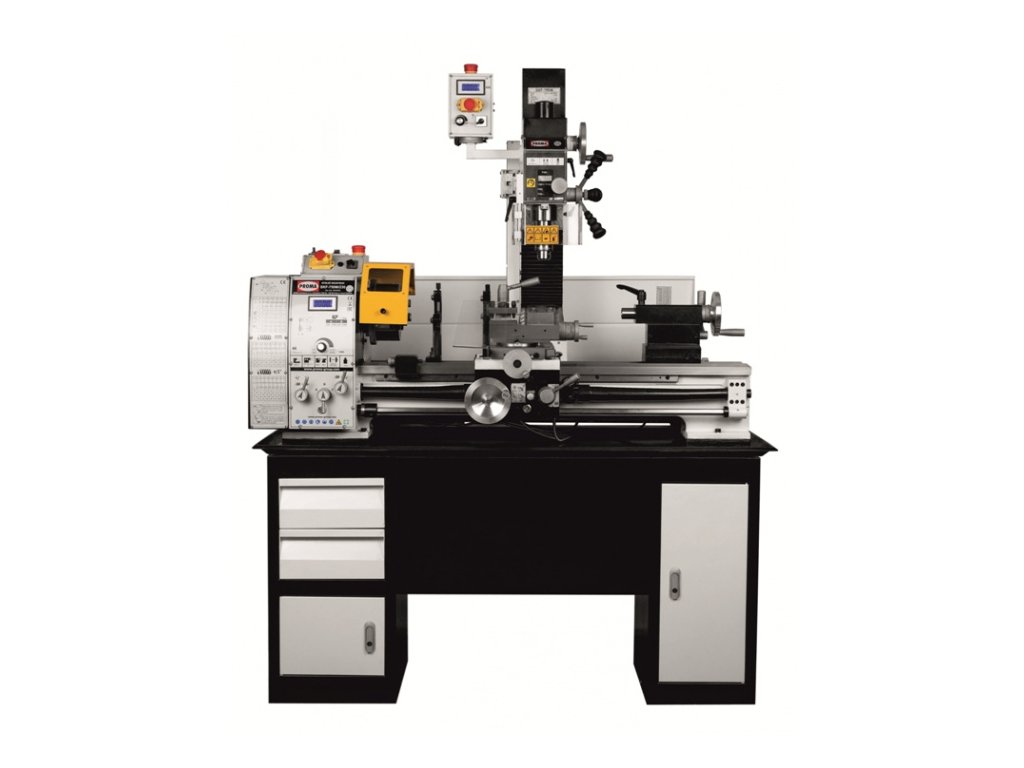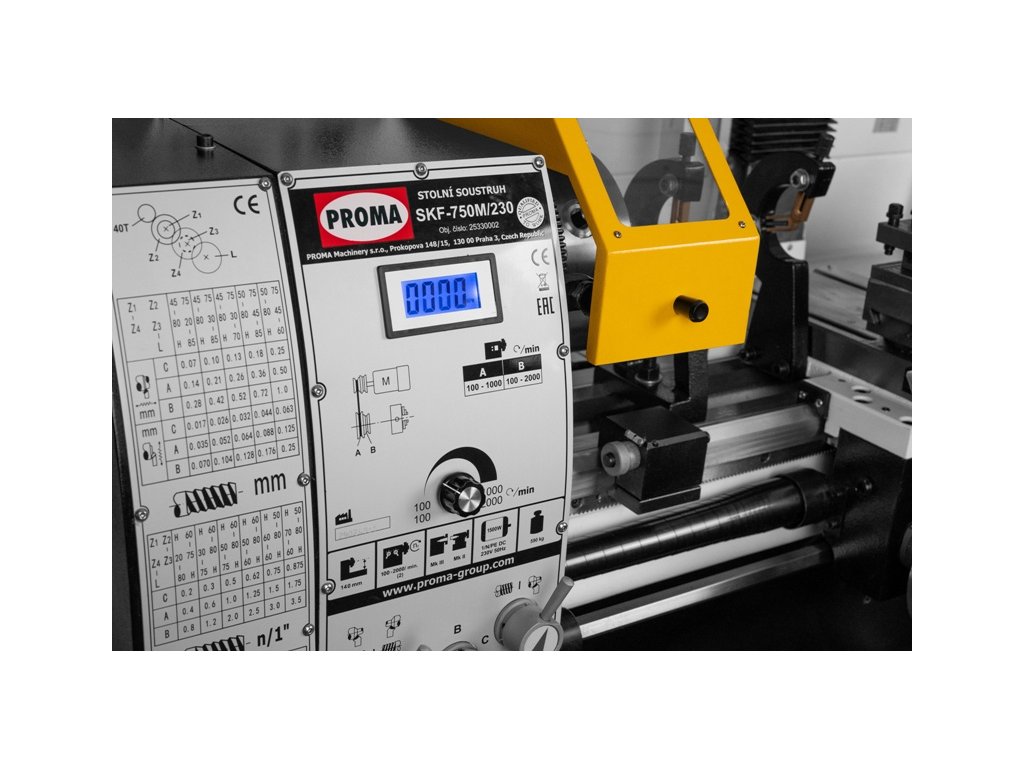 Kombinovaný soustruh PROMA SKF-750M se řadí mezi profesionální skupiny strojů, které jsou učeny pro náročné dílny, zámečnictví a školy. Díky robustnímu loži a celkové hmotnosti 532 kg nabízí excelentní přesnost. Tento typ stroje je standardně vybaven jak vodicím a tažným vřetenem pro řezání závitů, automatickým podélným a příčným posuvem, tak i natáčecí frézovací hlavou. Díky této kombinaci umožňuje kombi soustruh provádět vrtací, frézovací a soustružnické práce v malých prostorech dílen.