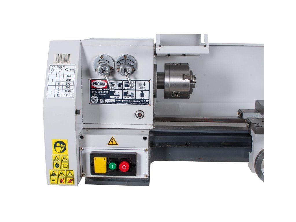 Univerzální soustruh SPA-500P/230 je určen pro opracování obrobků z kovů, plastů i dřeva. Poskytuje vhodné řezné podmínky pro hospodárné obrábění všech běžně používaných materiálů od hliníku a jeho slitin, přes neželezné kovy, až po ocele vysoké pevnosti. Soustruh umožňuje vnější i vnitřní soustružení válcových ploch, kuželových a čelních ploch, zapichování, upichování, vrtání apod. Na stroji lze řezat všechny dané druhy závitu s velkým rozsahem stoupáním. Univerzálnost soustruhu zvyšuje možnost použití zvláštního příslušenství.