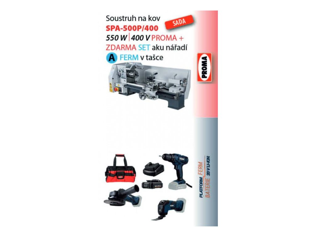 SPA-500P/400 - Soustruh na kov + Ferm aku sada nářadí A