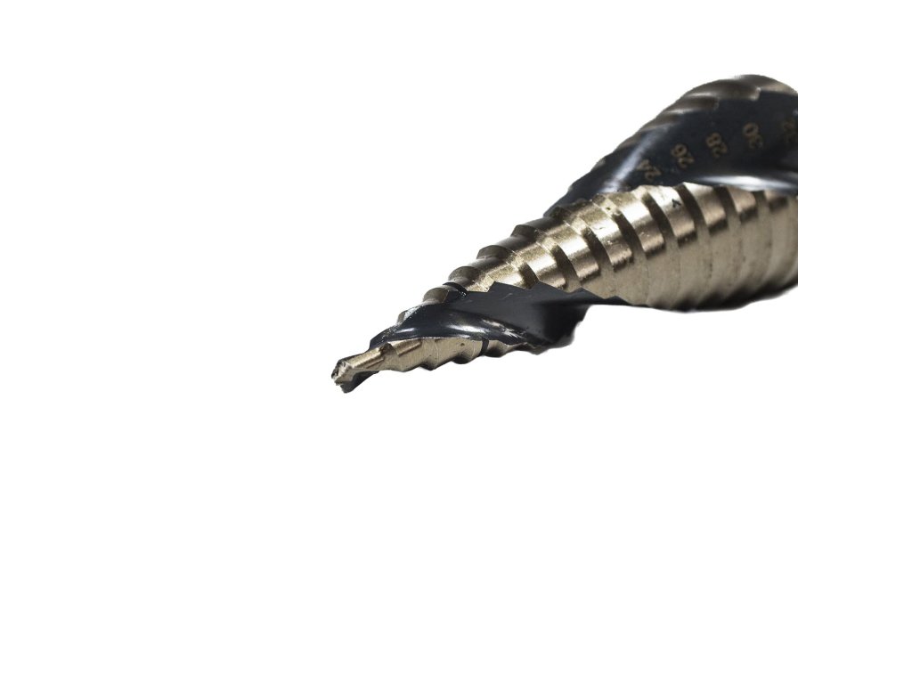 Stupňovitý vrták slouží pro vrtání kruhových otvorů v ocelových plátech a plechu (i měkčích materiálů jako je dřevo, plast apod.). Plynulé a bezhrotové vrtání bez deformace materiálu. Díky povrchové úpravě TiN a TiAIN je nástroj odolnější proti opotřebení čela i hřbetu. Povlak vrtáku snižuje energetickou náročnost obrábění a zvyšuje jeho spolehlivost.