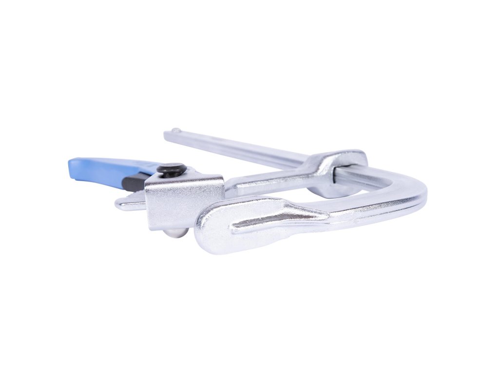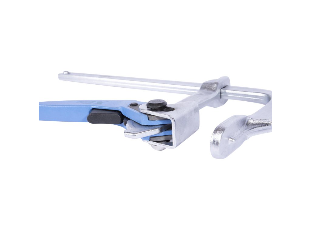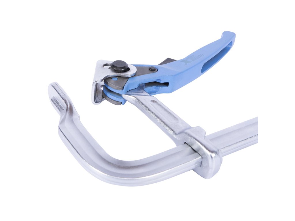 Rychloupínací svěrka je vyrobena z kvalitní oceli, povrch svěrky je pozinkovaný. Hlavní předností je větší rezerva energie, díky optimalizovanému profilu kolejnice pro rovnoměrné napnutí, zejména při maximálním využití upínacího rozsahu.