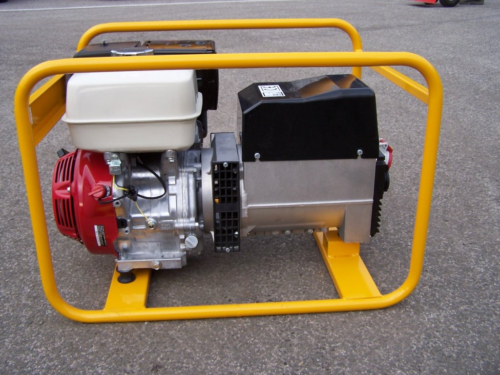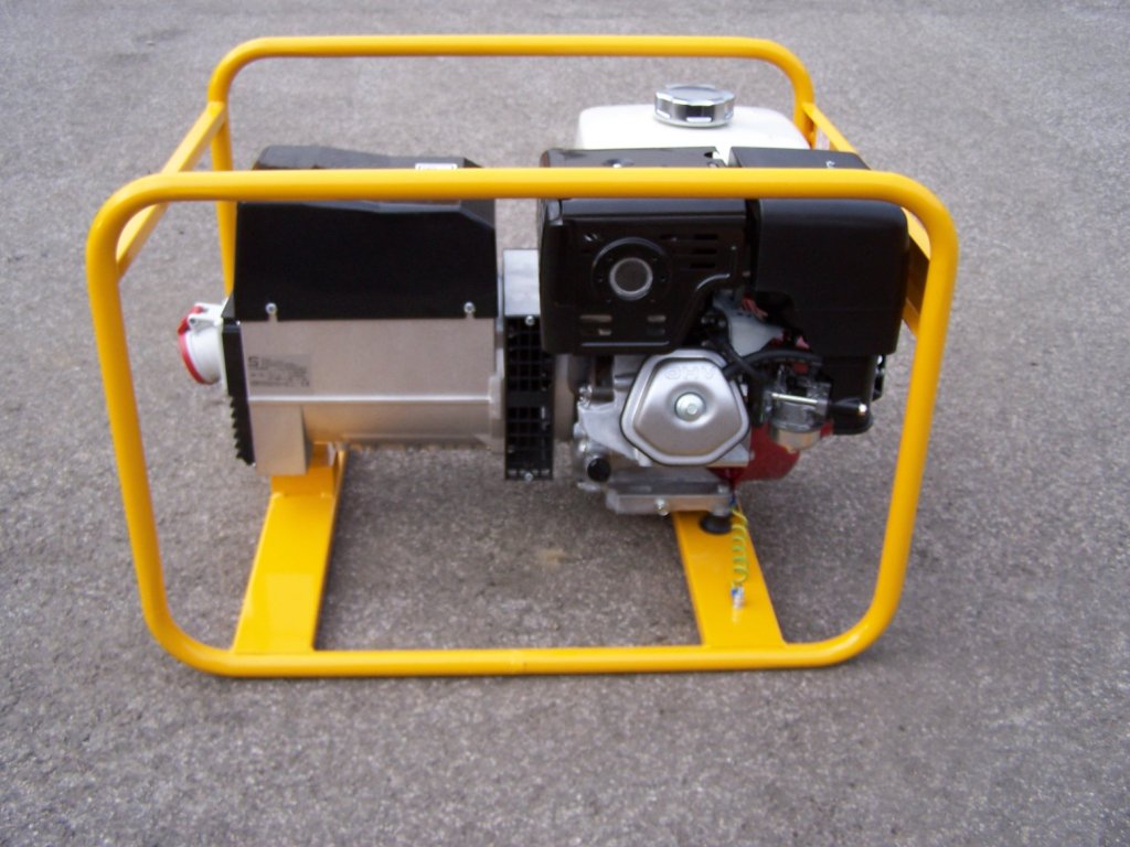 Elektrocentrála je poháněná zážehovým motorem HONDA, osazená je střídavým synchronním alternátorem, napětí 230 V a 400 V, frekvence 50 Hz, 3000 ot min-1, chlazení vzduchem, tepelný jistič, olejové čidlo, ektrocentrála je uložena v trubkovém rámu na gumokovech.