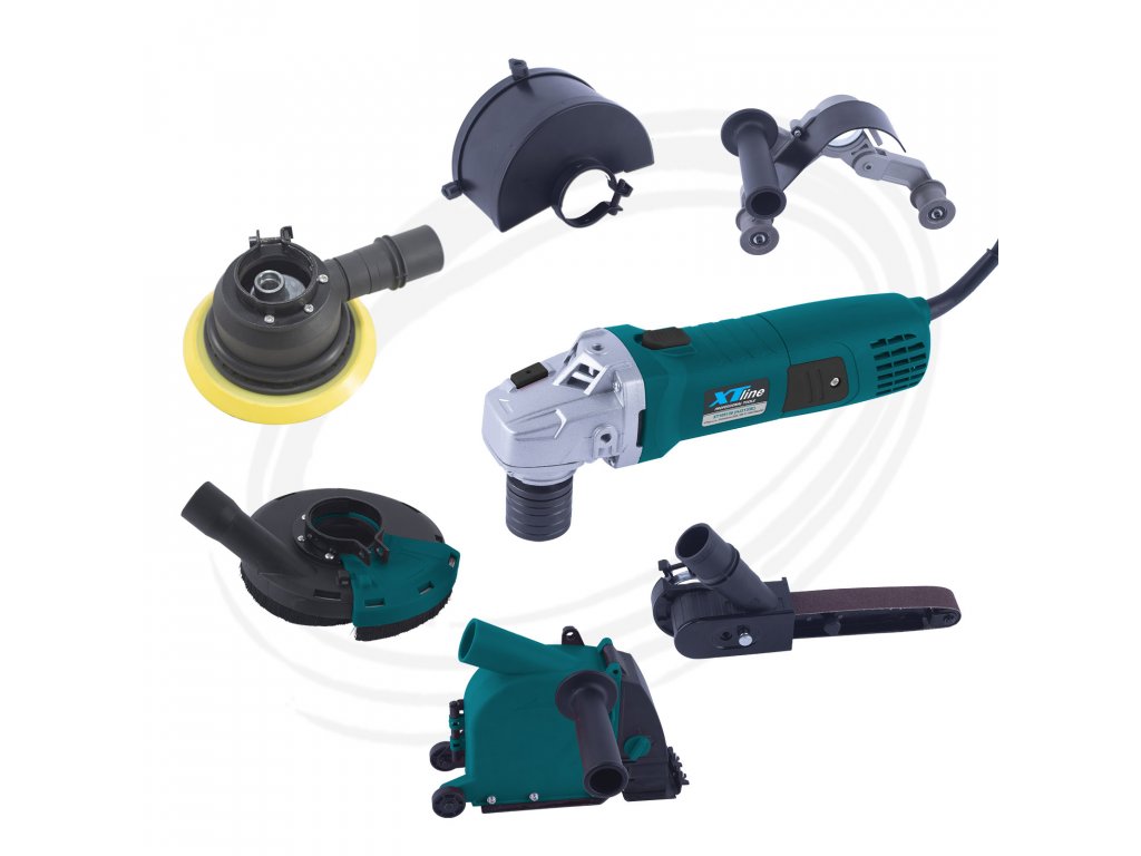Úhlová bruska s regulací 125mm, 1400W + 6 nástavců na brusku XT105135