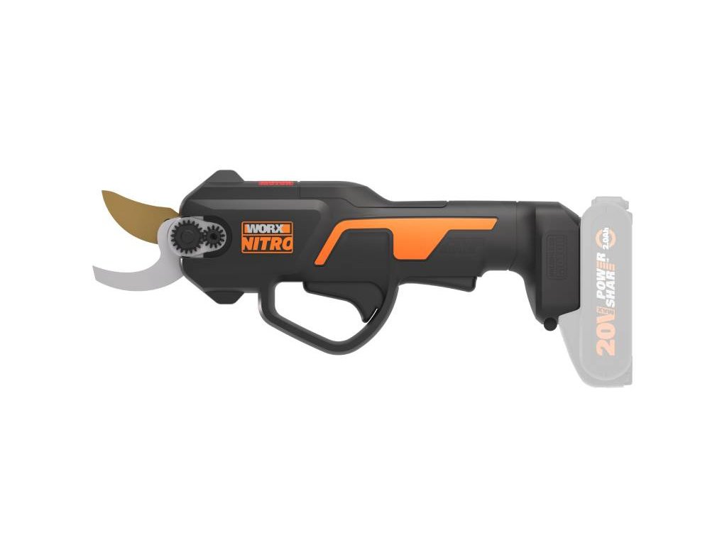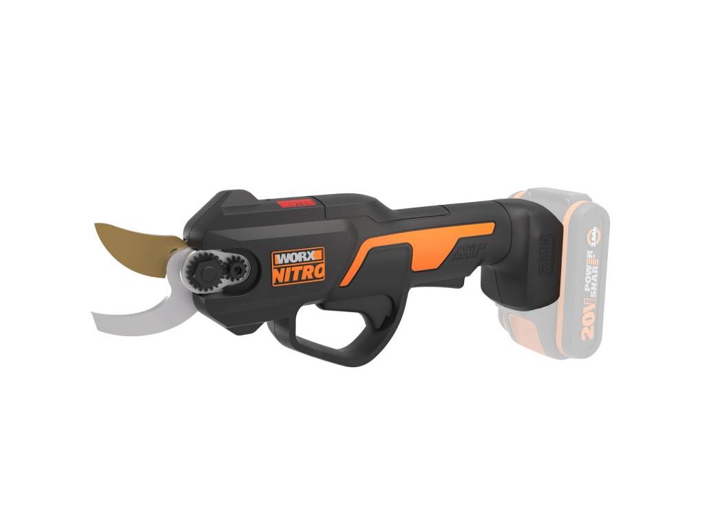 WG330E.9 - Aku nůžky na větve 20V - bez akumulátoru - Powershare Stříhání vašich stromů a keřů ještě nikdy nebylo tak snadné! S rozevřením čepelí o velikosti 25 mm dokážou nůžky Worx WG330E stříhat široké spektrum větví o tloušťce až 25 mm – dokonalé, pro nenáročné využití ve vašem ovocném sadu a na zahradě. Bezkartáčový motor pro vyšší výkon, delší výdrž a delší životnost motoru.