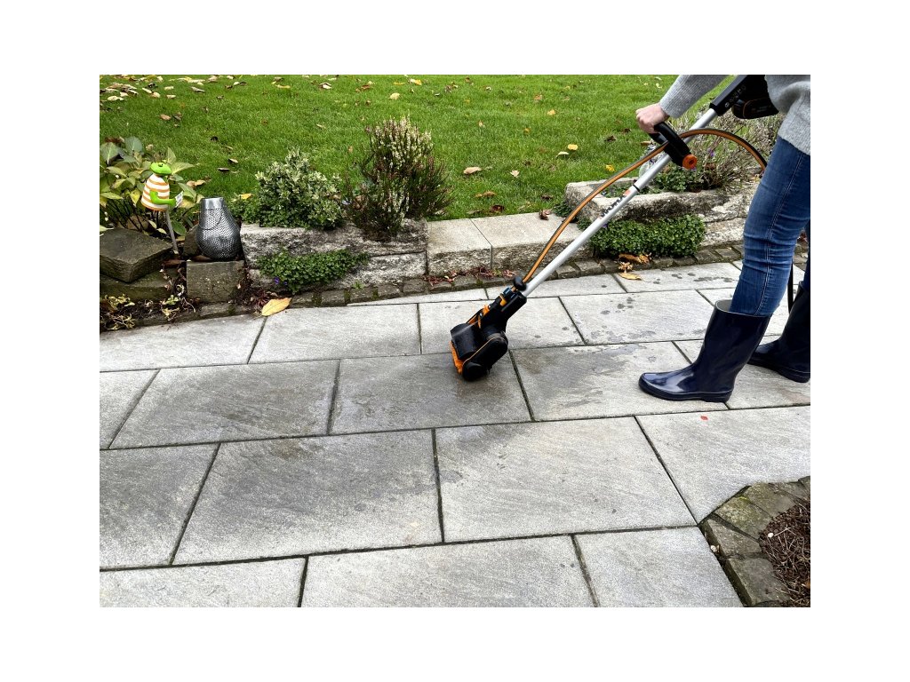 Aku povrchový kartáč WG441E je systém s rychle výměnnými kartáči určený k čištění chodníků, kamene, dřeva a umělé trávy.